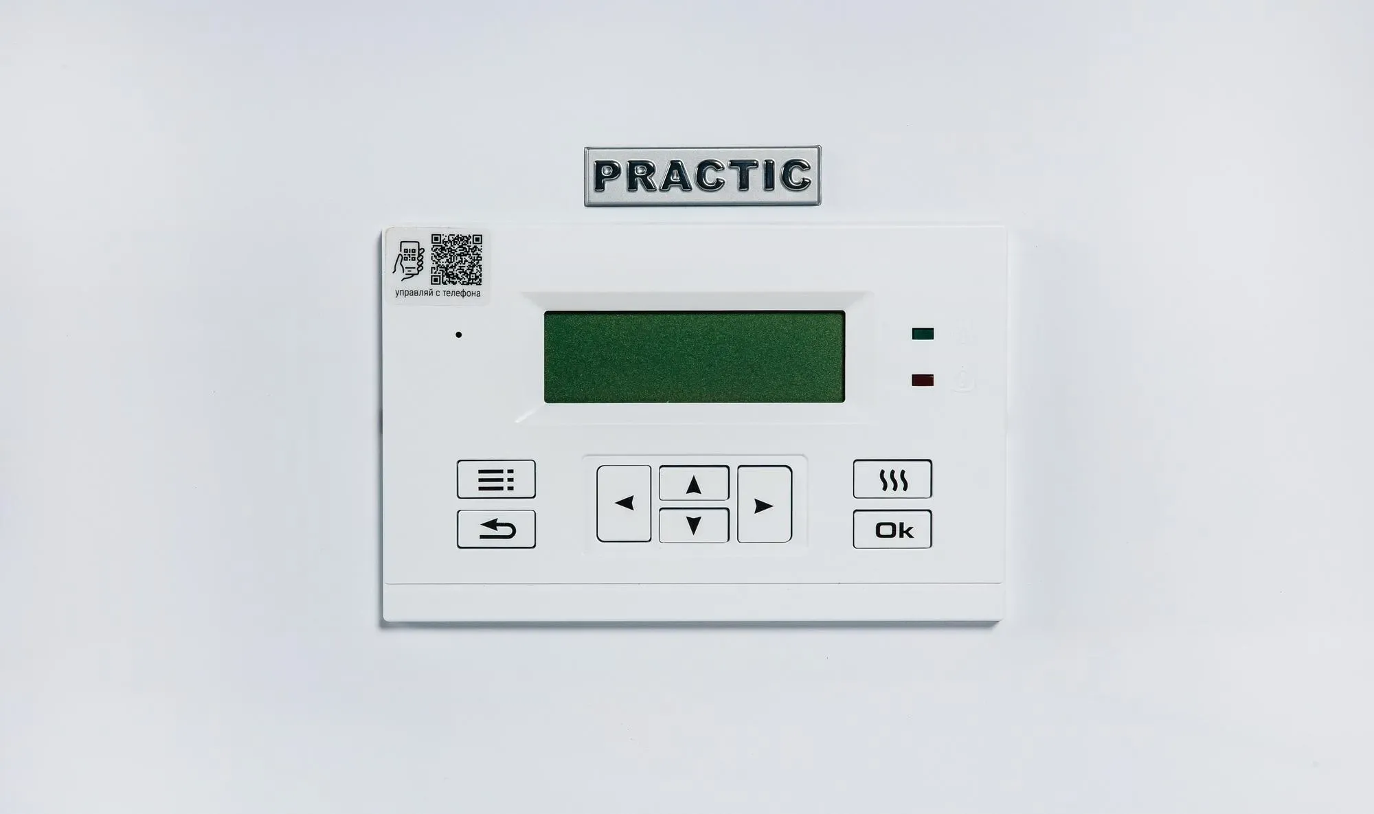 Управление котлом основано на современном уникальном погодозависимом алгоритме, настройка может происходить по температуре теплоносителя, комнатной и уличной температурам. Лаконичное меню с крупным шрифтом и быстрым доступом к функциям, встроенный WI-FI. Есть возможность программирования суточной и недельной температуры воздуха в отапливаемом помещении. В конструкционном решении котла надежности отведено особое место. Котел защищен как от сбоев, так и от замерзания. Самодиагностика неисправностей, накопление статистики по энергопотреблению и наличие уникального режима отладки, в рамках которого можно проверить срабатывание каждого из органов управления котла. ЭВАН PRACTIC не является мини-котельной, однако он имеет необходимые разъемы для подключения насоса и функцию управления контуром ГВС.