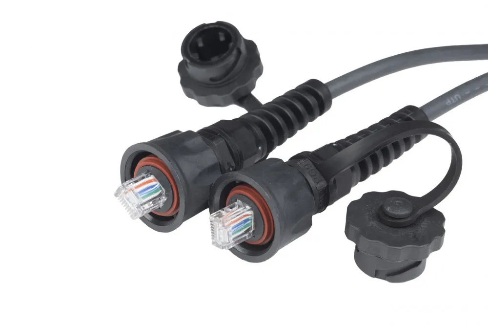 Hyperline PC-IE-LPM-UTP-RJ45-RJ45-C5e-5M-BK Промышленный патч-корд U/UTP, IP67, категория 5e, с защитными крышками, 5 м, черный