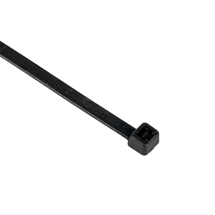 Предназначен для увязки кабелей и проводов в пучок и монтажа кабельных линий и проводников. Ремешок самофиксирующийся, блокирующий механизм. Изготовлен из Nylon 6.6, устойчивого к старению, коррозии, воздействию солей, ультрафиолета, кислот, щелочей, спирта, бензина и масел. При производстве кабельных стяжек черного цвета добавляется угольный порошок, который является одним из наиболее эффективных стабилизаторов. Он улучшает физические свойства продукции в стойкости к погодным условиям и УФ-излучению (прямые солнечные лучи).