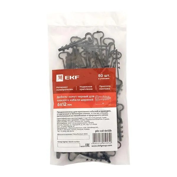 Отзывы о Дюбель-хомут d6х12мм для плоского кабеля полипропилен черн. (уп.50шт) EKF plc-cd-6x12b )