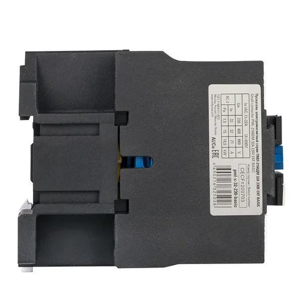 Пускатели ПМЛ EKF Basic состоят из корпуса, закрепленных в нем неподвижных контактов, подвижных контактов, которые закреплены в подвижной части магнитной системы. Неподвижная часть магнитной системы закреплена жестко в корпусе ПМЛ. Пружина препятствует смыканию контактов. При подаче напряжения на катушку управления в магнитной системе пускателя возникает магнитное поле, которое, преодолевая сопротивление пружины, смыкает магнитную систему и замыкает контакты. При отключении напряжения с катушки управления пружина размыкает контакты. Различия между контакторами ПМЛ Basic и КМЭ PROxima состоит в разной коммутационной износостойкости. Если необходим контактор для жестких условий работы с частым включением, следует применять КМЭ EKF PROxima. Возможна коммутация алюминиевым и медным проводом.