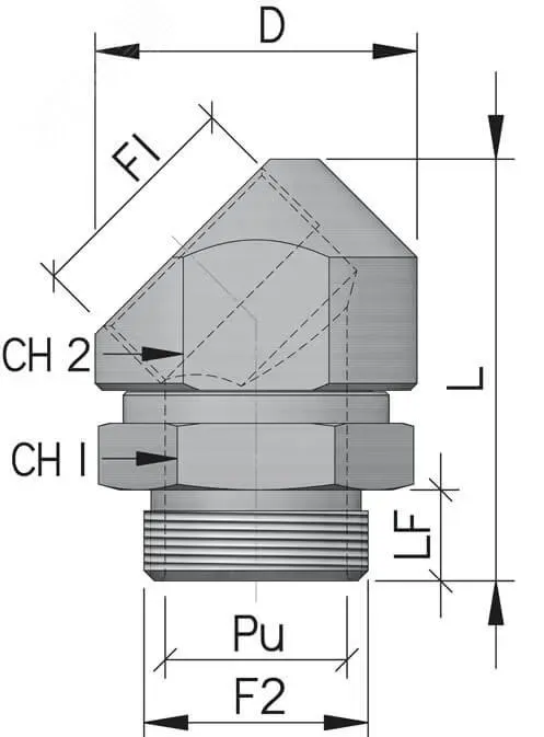 DKC / ДКС 6028-40G Поворотный адаптер 45° M40x1,5, IP68/IP67,