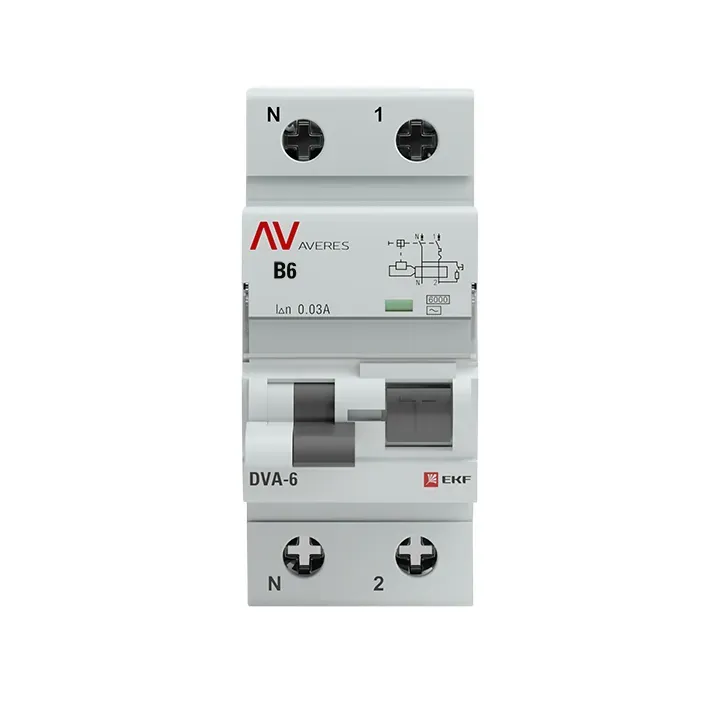 Автомат дифференциальный dva-6 1p+n 6а (b) 30ма (ac) 6ка averes EKF RCBO6-1PN-6B-30-AC-AV