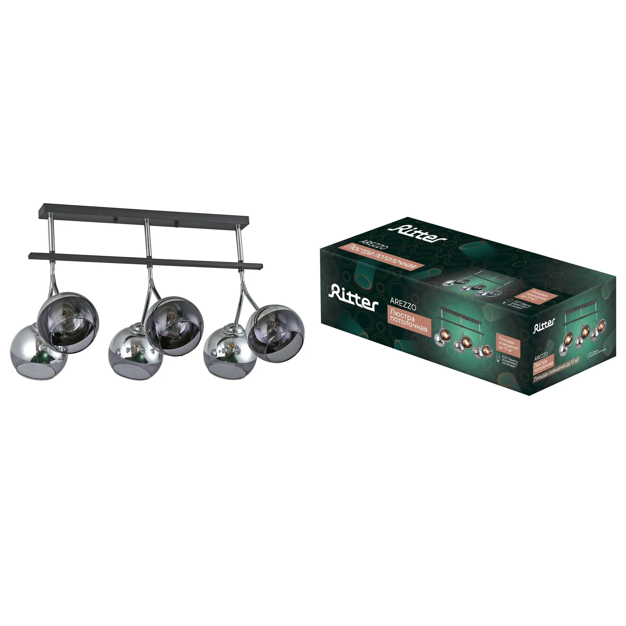 Люстра потолочная, AREZZO, 579х358х385мм, 6хE27, металл, черный хром, 52554 7, Ritter RITTER 52554 7