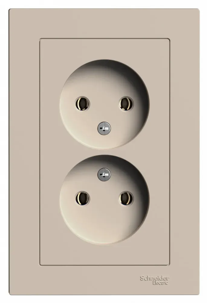 Розетка двойная Systeme Electric (ранее Schneider Electric) серии AtlasDesign (в сборе, цвет ПЕСОЧНЫЙ) без заземления и без шторок подходит для сетей 250 В, на ток 16 А. Лицевые детали из качественного ABS-пластика, устойчивого к царапинам и УФ-излучению. Двойная розетка позволяет подключить два устройства в одном месте. Изделие поставляется в комплекте с рамкой того же цвета.