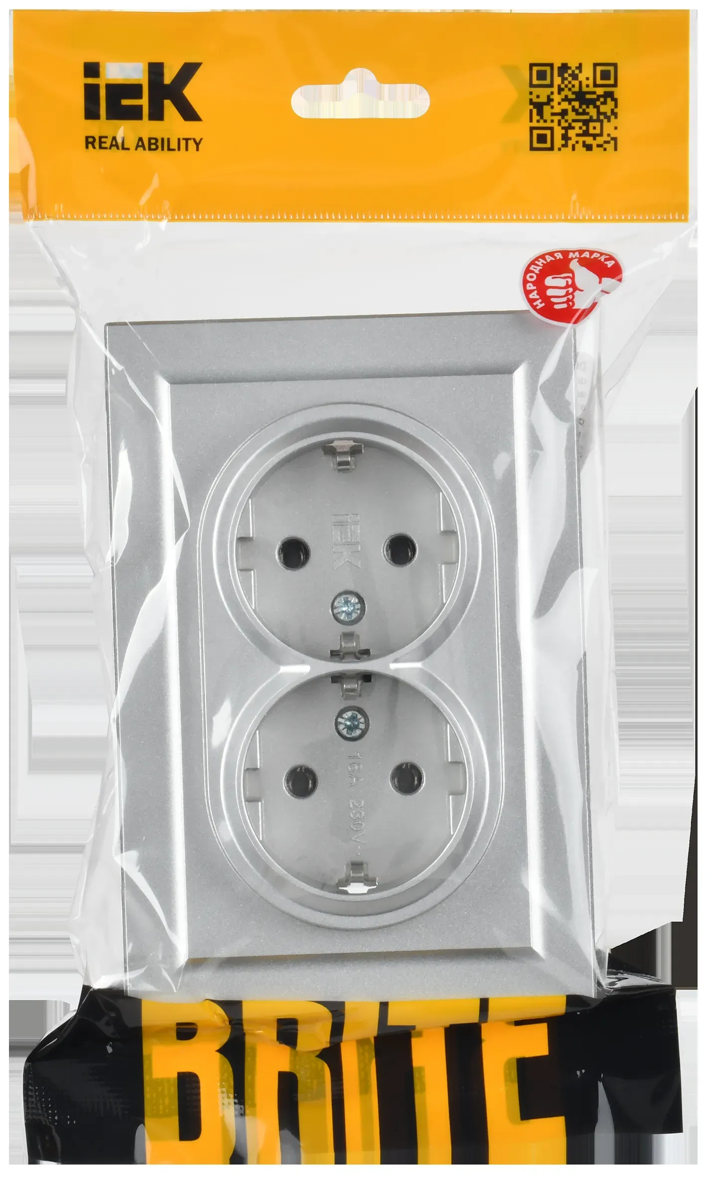 Отзывы о BRITE Розетка двойная с заземлением без защитных шторок 16А в сборе РС12-3-БрА алюминий IEK BR-R21-16-K47-F )