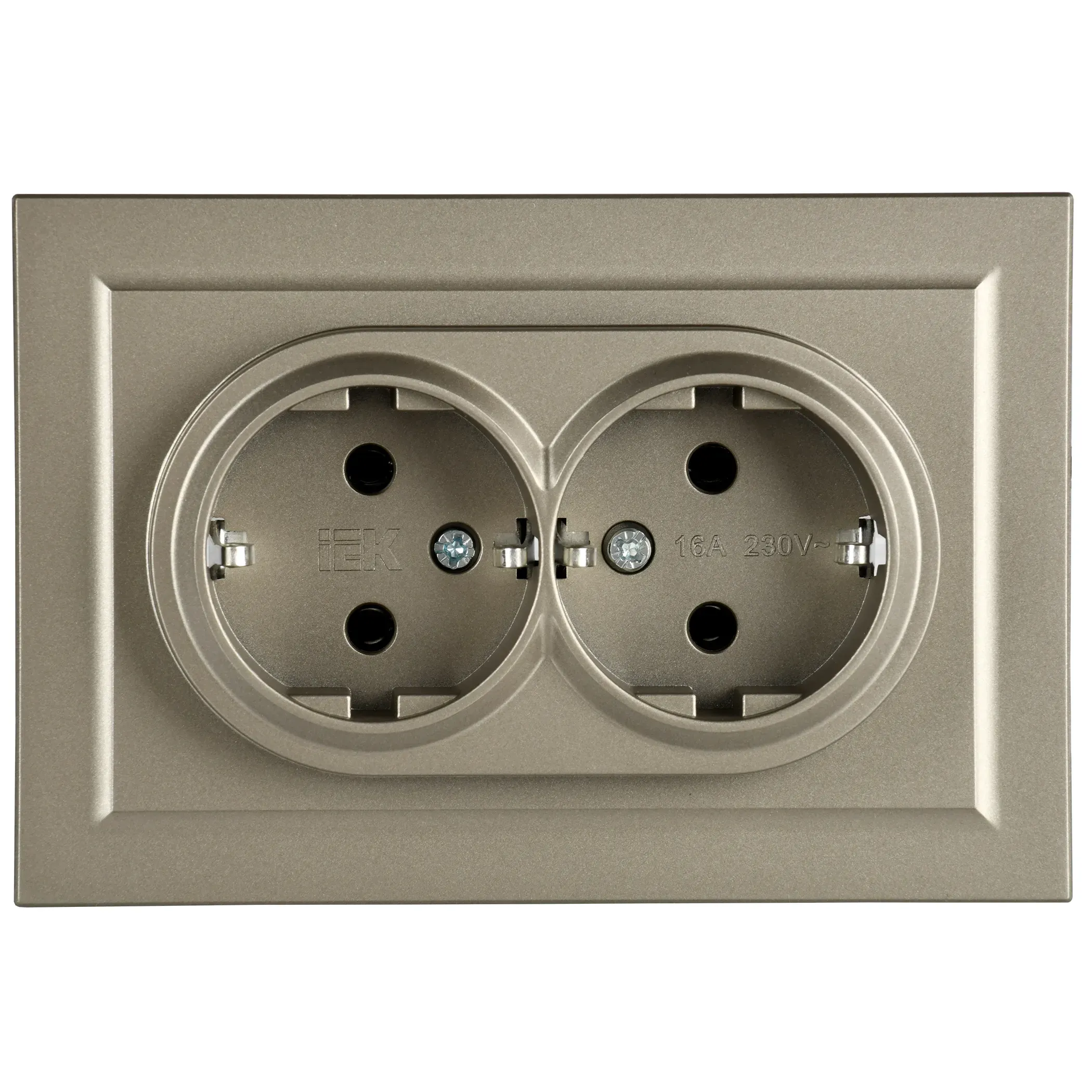 Отзывы о BRITE Розетка двойная с заземлением без защитных шторок 16А в сборе РС12-3-БрШ шампань IEK BR-R21-16-K37-F )