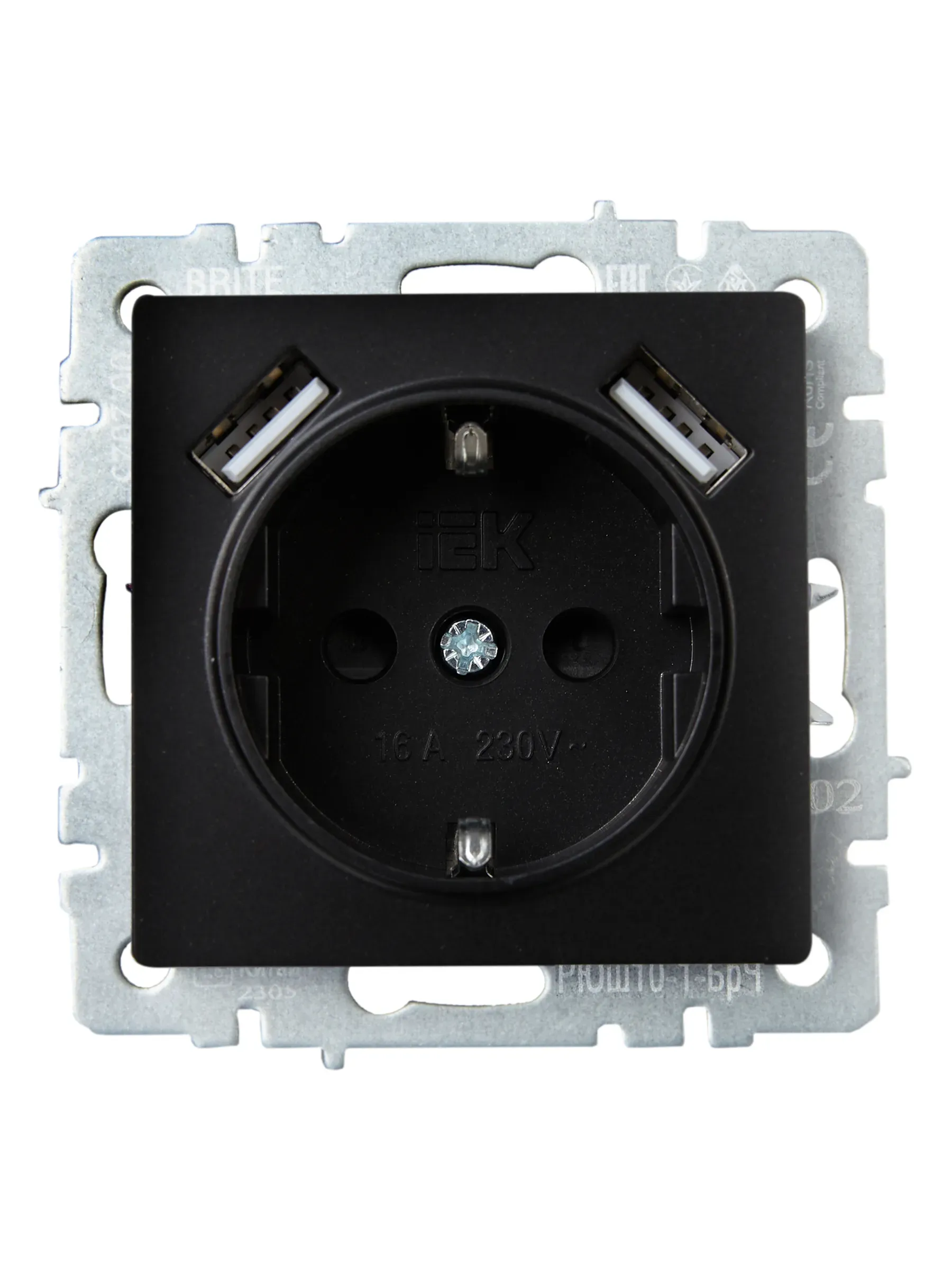 Отзывы о BRITE Розетка с заземлением с защитными шторками 16А с USB A+A 2,1А РЮш10-1-БрЧ черный IEK BR-R14-16-U21-D21-K02 )