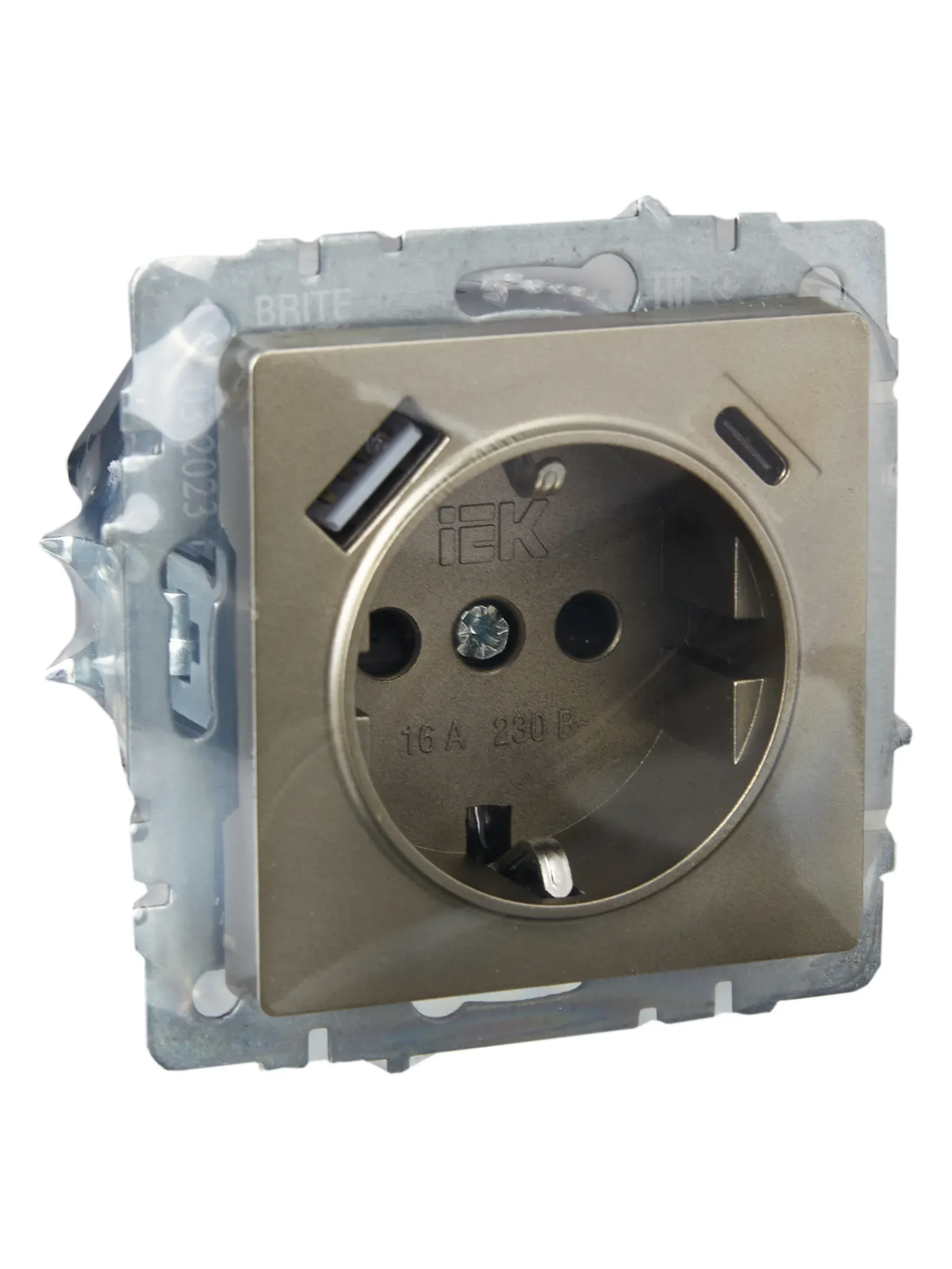 Отзывы о BRITE Розетка с заземлением с защитными шторками 16А с USB A+C 18Вт РЮш11-1-БрШ шампань IEK BR-R14-16-U22-018-K37 )