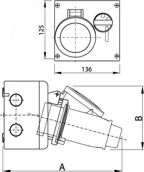 Розетка наружной установки с механической блокировкой и верхним расположением разъема ip44 32 ДКС DIS5003283