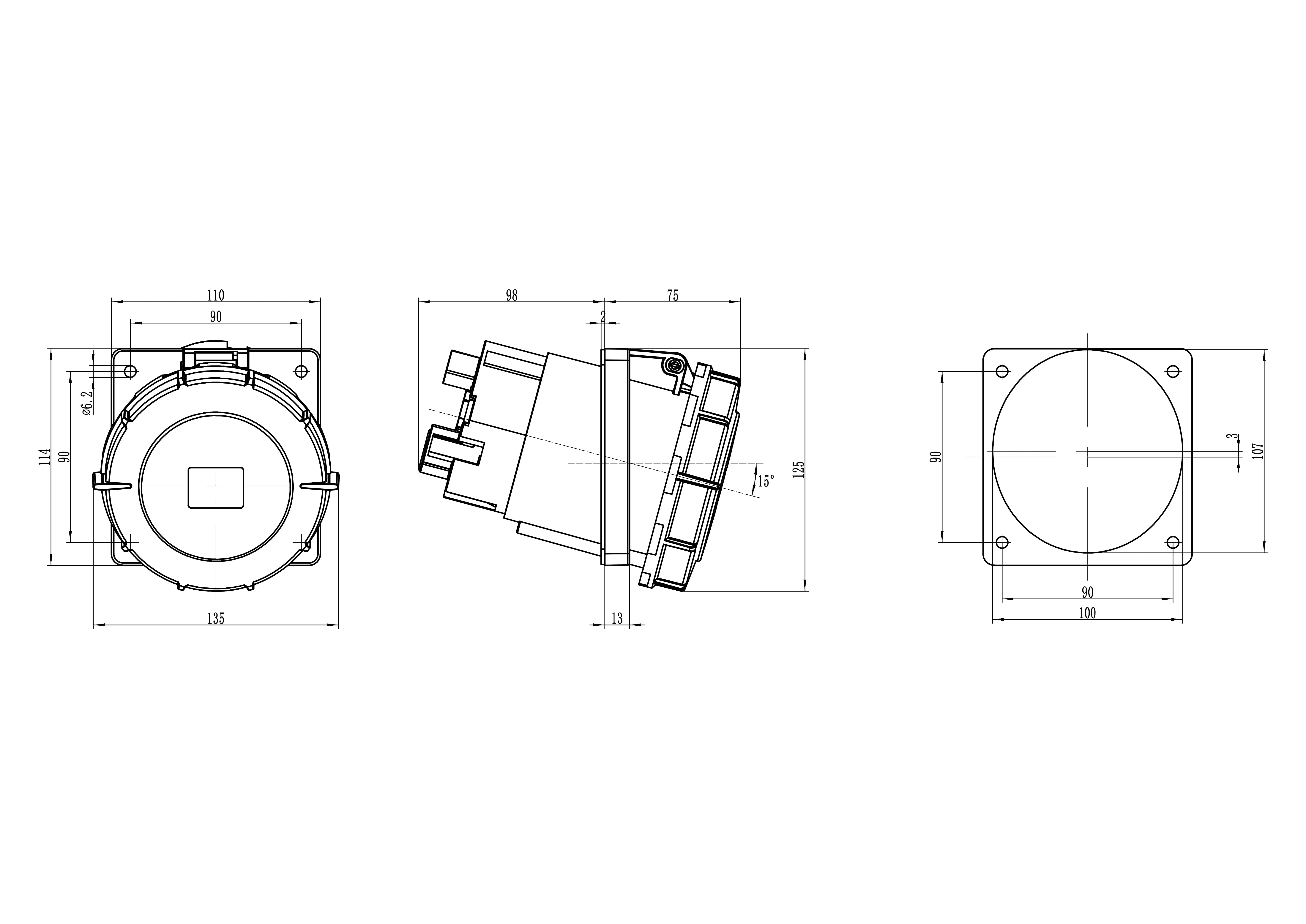 Розетка скрытой установки ip67 125a 3p+e 400v ДКС DIS41512566