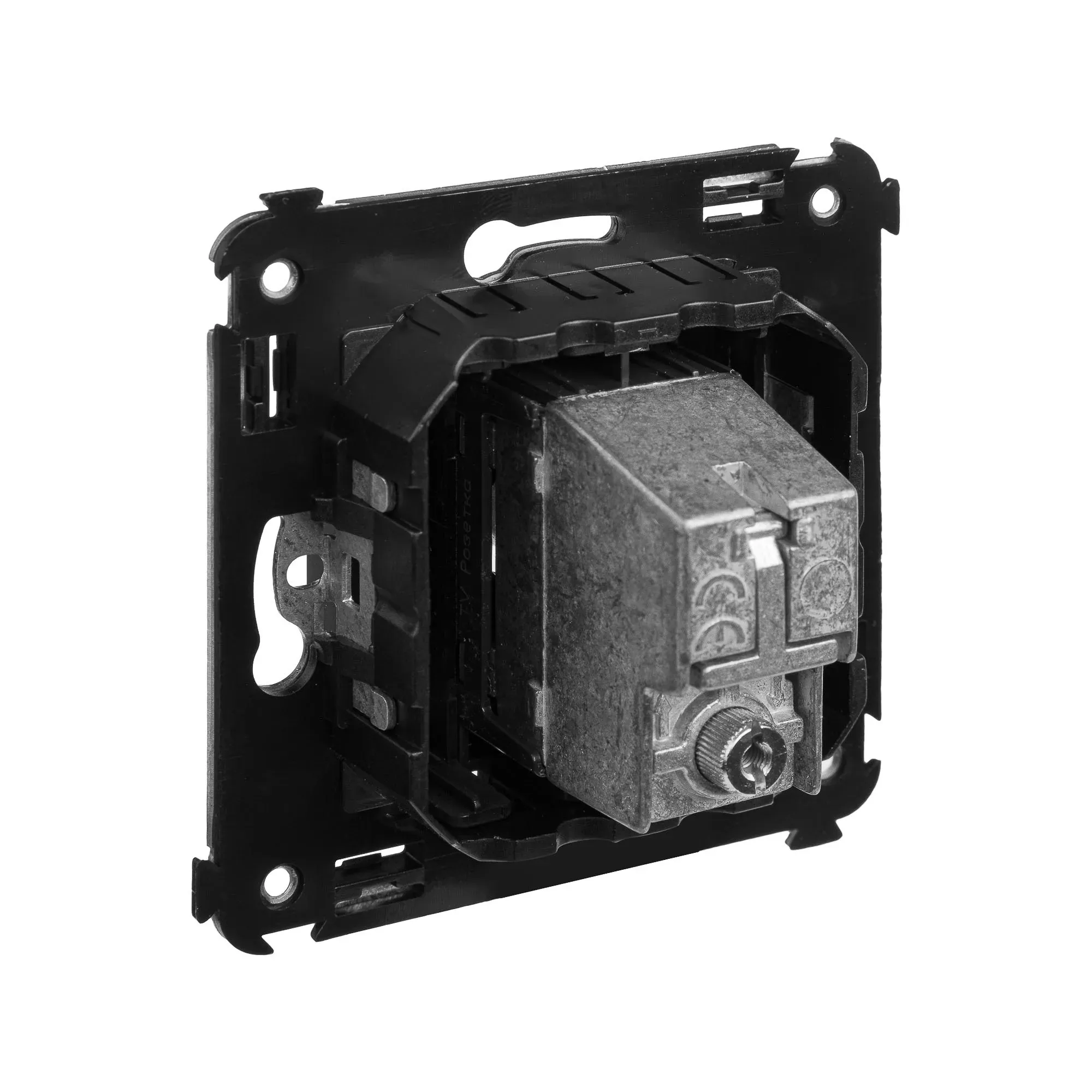 Розетка TV проходная в стену. Предназначена для монтажа в подрозеточные коробки глубиной не менее 45 мм (код 59301). Используется для подключения телевизионного кабеля к телевизору. Винтовые зажимы. Диапазон рабочих частот 4–2400 МГц, затухание