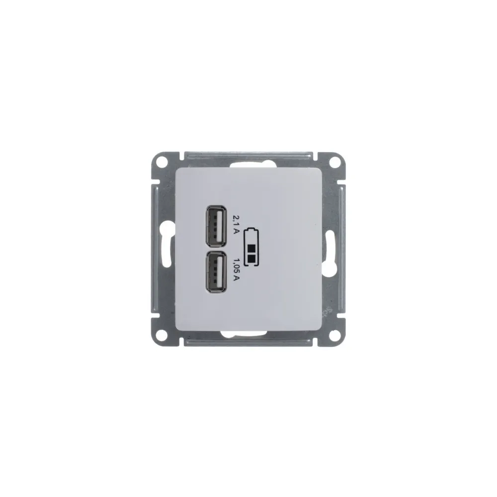 Розетка GLOSSA USB 5В/2100мА 2х5В/1050мА механизм белый SE (Потенциал) GSL000133