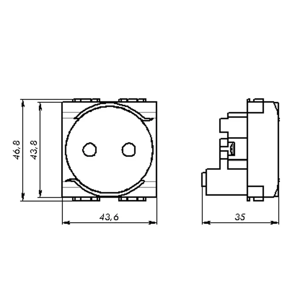 Силовая электрическая розетка штекерная, без заземления со шторками. Назначение- подключение оргтехники, бытовых приборов и т. п. Характеристики- в соответствии с ПУЭ, пункт 7.1.49 ? имеются защитные шторки, автоматически закрывающие гнезда штепсельной розетки при вынутой вилке, имеется заземление, диаметр отверстий для ввода кабелей ? 3 мм (по 2 отверстия на клемму), номинальный ток ? 16 А, номинальное напряжение ? 250 B. Кол-во модулей- 2. Цвет- белый