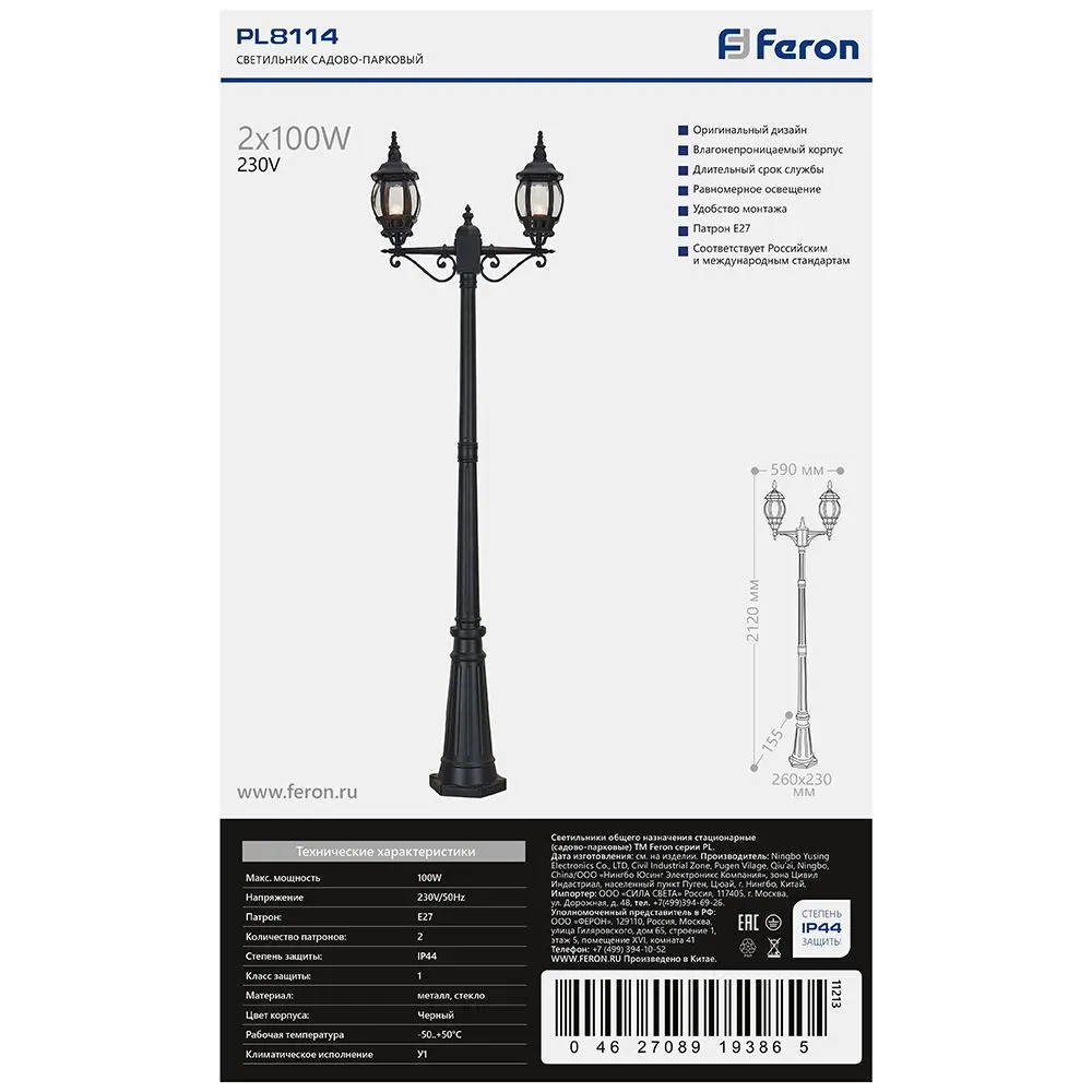 В интернет-магазине олми-коннект можно купить Светильник 8114 2х100W 230V E27 2х(160х160)х2300мм черный FERON 11213 артикул: 11213 по цене от 11913.37 до 12354.61 рублей. Менеджеры ответят на вопросы, дадут подробную информацию по характеристикам .