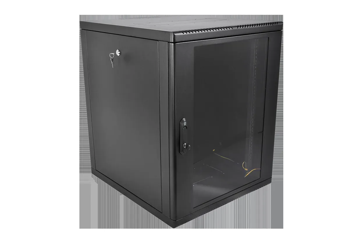 коммутационный шкаф - 19-дюймовое исполнение - высота 12 юнитов - размер 600х350 мм - дверь стекло - цвет черный