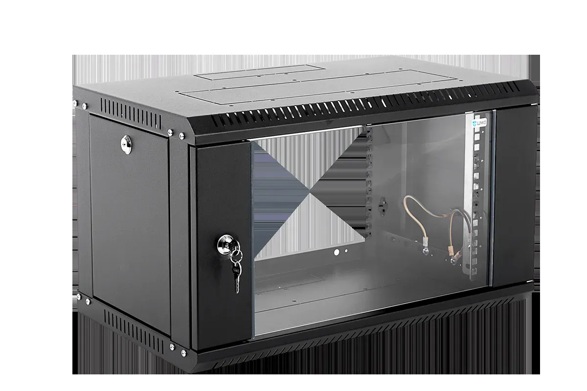 коммутационный шкаф - 19-дюймовое исполнение - высота 6 юнитов - размер 600х520 мм - дверь стекло - цвет черный