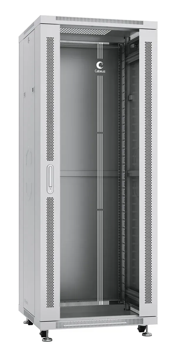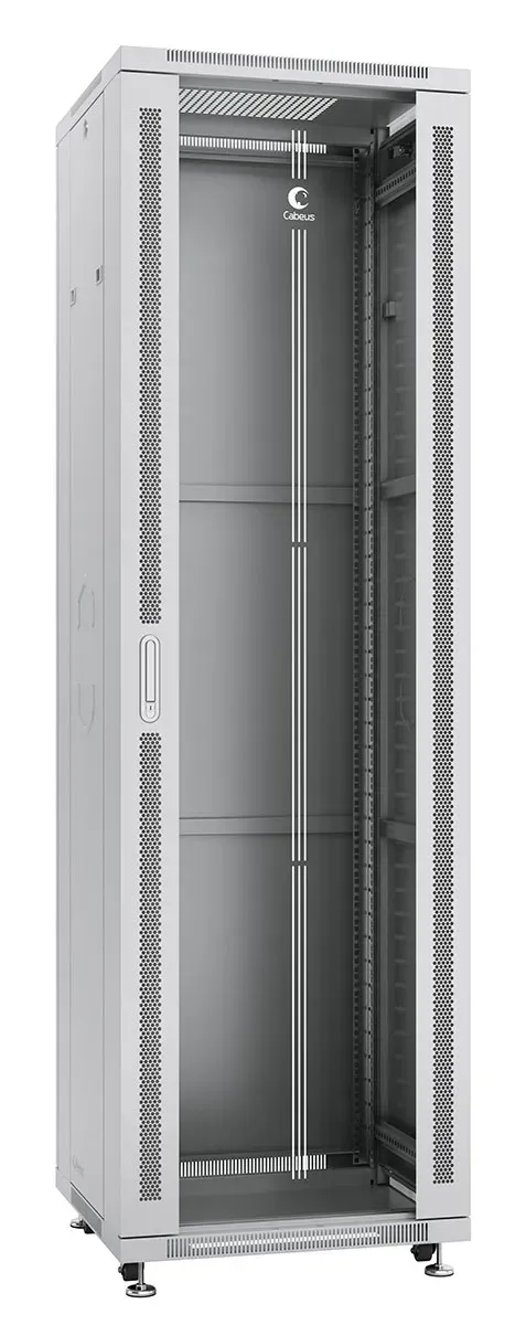 коммутационный шкаф - 19-дюймовое исполнение - высота 42U - глубина 800 мм - ширина 600 мм - вес 100 кг - перфорированная дверь - съемные боковые панели - степень защиты IP 20 - цвет серый