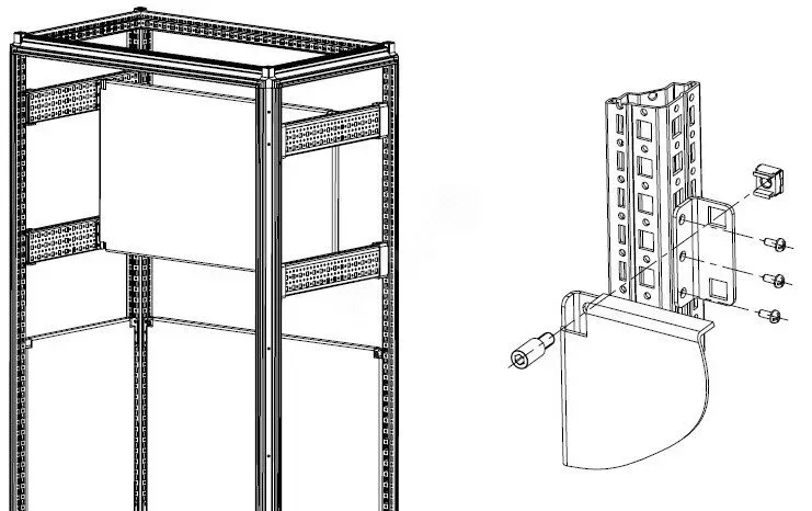 Секционные монтажные панели обеспечивают универсальность внутреннего монтажа, как непосредственно в боковых проемах каркаса, так и внутреннем монтажном пространстве в сочетании с монтажными шасси и профилями. Позволяет легко производить замену неисправных блоков. Обеспечивают создания дополнительных монтажных уровней.