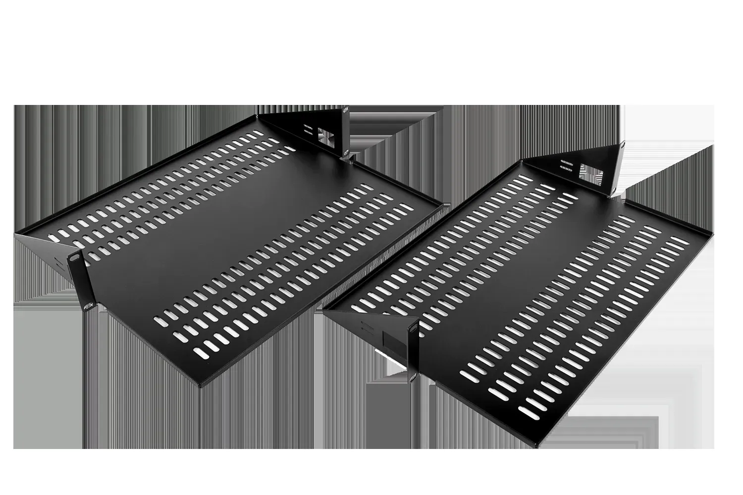 Перфорированные полки серии МС с передним креплением - это идеальный вариант для настенных 19 шкафов малой глубины. Так же эти полки отлично подходят для установки в шкафах и стойках малогабаритного оборудования с максимальной нагрузкой до 15 кг. Перфорация полок МС, обеспечивает отличное охлаждение установленного оборудования, предохраняя его от перегрева и способствует общей циркуляции воздушных потоков в шкафу. Полки серии МС имеют высоту 2U (1U=4,5 см) и стандартную ширину 19", что делает их универсальными, позволяя устанавливать в шкафы разных производителей и конструкции. Производственная линейка имеет три варианта глубины 200, 300, 400 мм, стандартного серого цвета RAL 7035 (при необходимости, возможен заказ полок черного цвета RAL 9005). Крепление полок в шкафах или стойках производится за передние, так называемые "уши", посредством стандартного крепежного комплекта. Поставка полок осуществляется в транспортной упаковке по 5 штук, каждая полка имеет свой комплект крепежа.