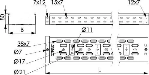 DKC / ДКС 35305ZL Лоток перфорированный 300х80, цинк-ламельный, толщина металла 0.8мм, длина лотка 3м (цена за 1м)
