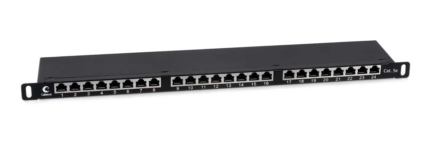Экранированная патч-панель Cabeus выполнена в 19” формате и предназначена для установки в телекоммуникационные шкафы и стойки. Соответствует характеристикам категории 5е. Высота 0,5U. Имеет 24 порта RJ-45.