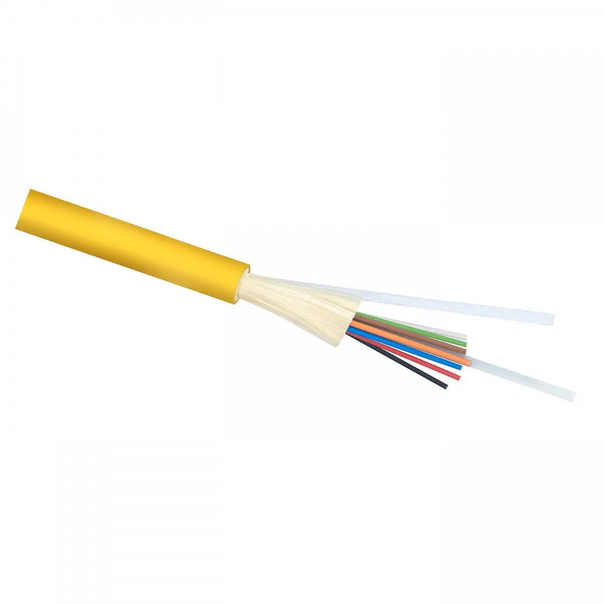 Кабель с 8-24 ОВ содержит центральный силовой элемент на основе стеклопластикового прутка, вокруг которого уложены оптические волокна в буферном покрытии и слой упрочняющих арамидных нитей. Внешняя оболочка из LSZH компаунда. Цвет оболочки кабеля зависит от типа применяемого оптического волокна.