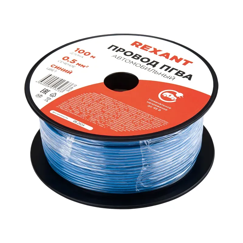 Провод ПГВА REXANT предназначены для гибкого соединения автотракторного электрооборудования и приборов с номинальным напряжением до 48 В, изготавливаются для автомобильной проводки и элементов питания и управления. Состоит из медной многожильной токопроводящей жилы с поливинилхлоридной изоляцией.