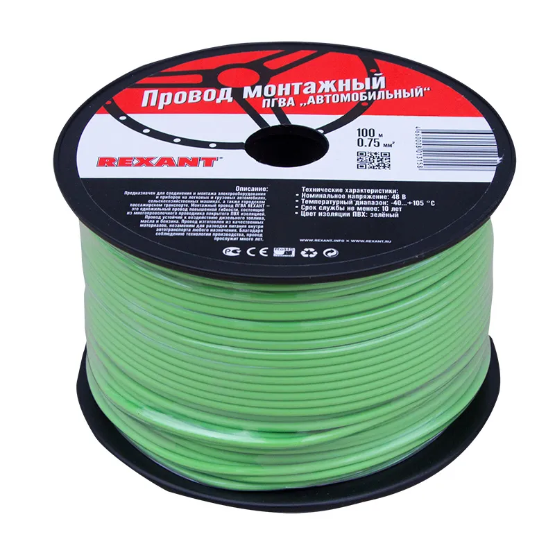 Провод ПГВА REXANT предназначены для гибкого соединения автотракторного электрооборудования и приборов с номинальным напряжением до 48 В, изготавливаются для автомобильной проводки и элементов питания и управления. Состоит из медной многожильной токопроводящей жилы с поливинилхлоридной изоляцией.