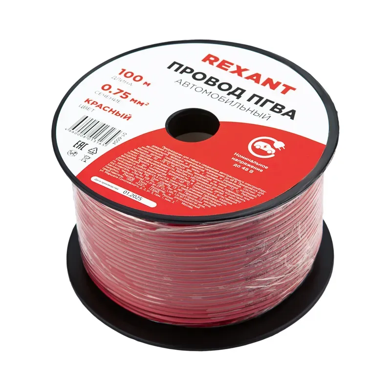 Провод ПГВА REXANT предназначены для гибкого соединения автотракторного электрооборудования и приборов с номинальным напряжением до 48 В, изготавливаются для автомобильной проводки и элементов питания и управления. Состоит из медной многожильной токопроводящей жилы с поливинилхлоридной изоляцией.