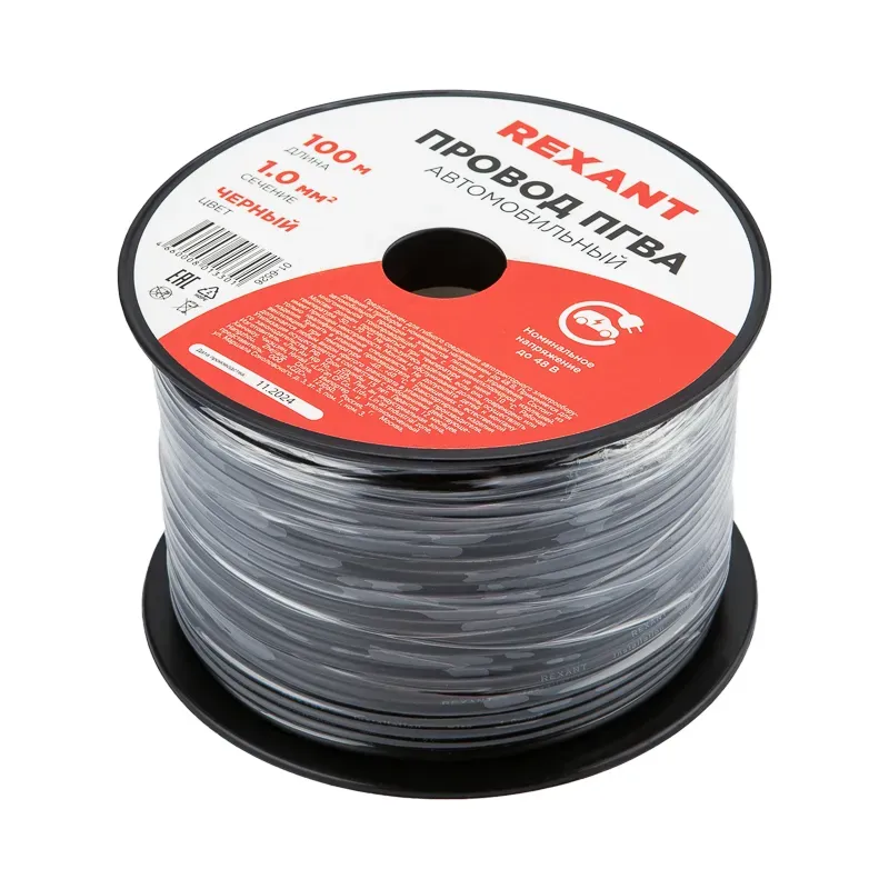 REXANT 01-6526 Провод ПГВА 1 х 1.00кв.мм 100м, ЧЕРНЫЙ