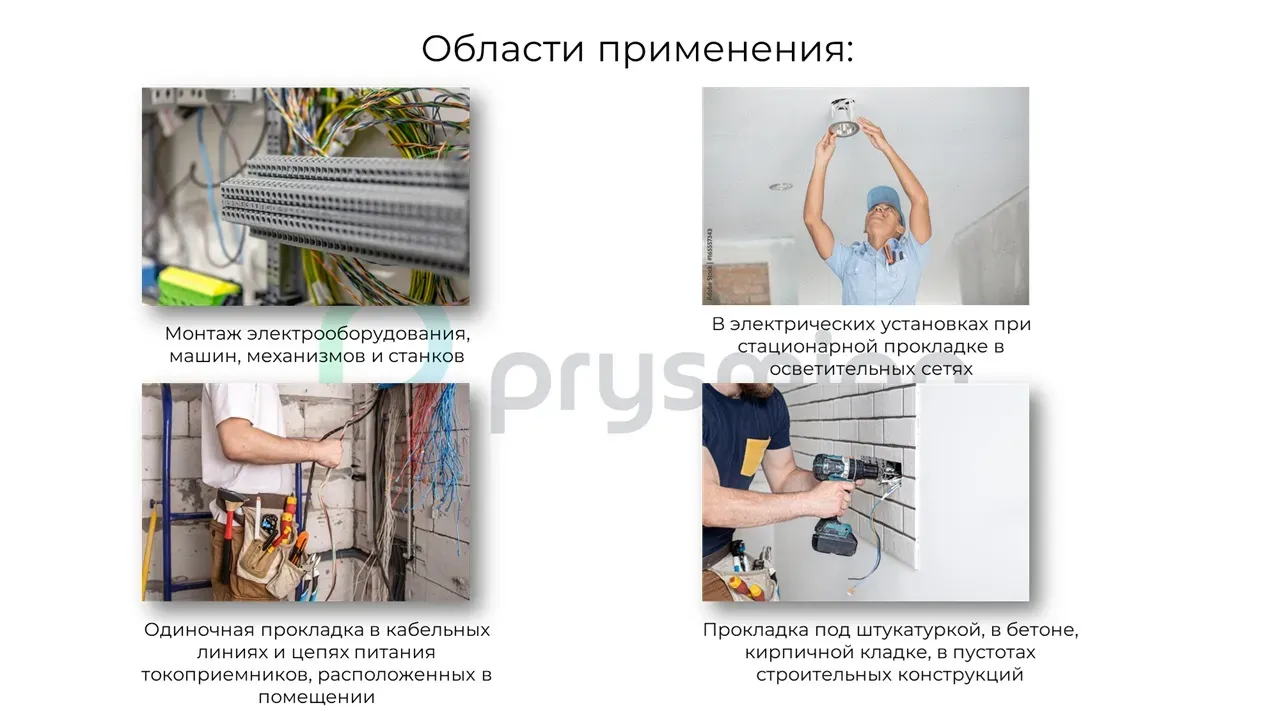 Провод ПуГВнг(А)-LS предназначен для электрических установок при стационарной прокладке в осветительных и силовых сетях, а также для монтажа электрооборудования машин, механизмов и станков на номинальное напряжение до 450/750 В частотой до 400 Гц или постоянное напряжение до 1000 В. Применяется при прокладке в стальных трубах, коробах, на лотках и др., для монтажа электрических цепей, где требуется повышенная гибкость при прокладке и монтаже. Представляет собой медную жилу с изоляцией из поливинилхлоридного пластиката пониженной пожарной опасности с низким дымо- и газовыделением.Эксплуатация при температуре окружающей среды от минус 40°C до + 65°C и относительной влажности до 98%.Монтаж при температуре окружающей среды не ниже минус 15°C.Гарантийный срок эксплуатации 3 года.