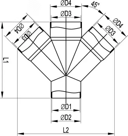 DKC / ДКС 021063 Соединение для четырех двустенных труб одного диаметра ф63мм, 45°, полипропилен