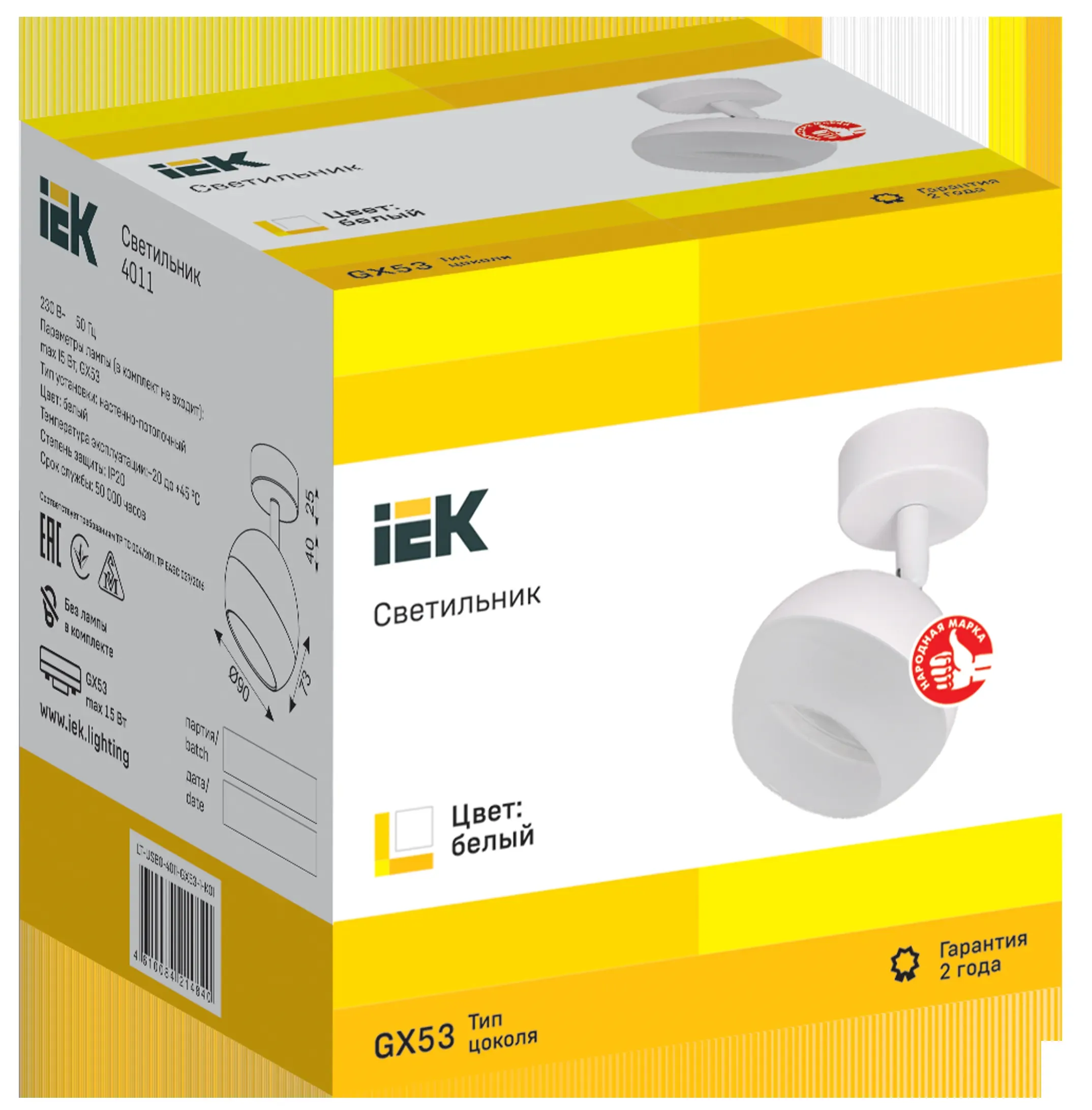 Отзывы о LIGHTING Светильник 4011 накладной настено-потолочный под лампу GX53 белый IEK IEK LT-USB0-4011-GX53-1-K01 )