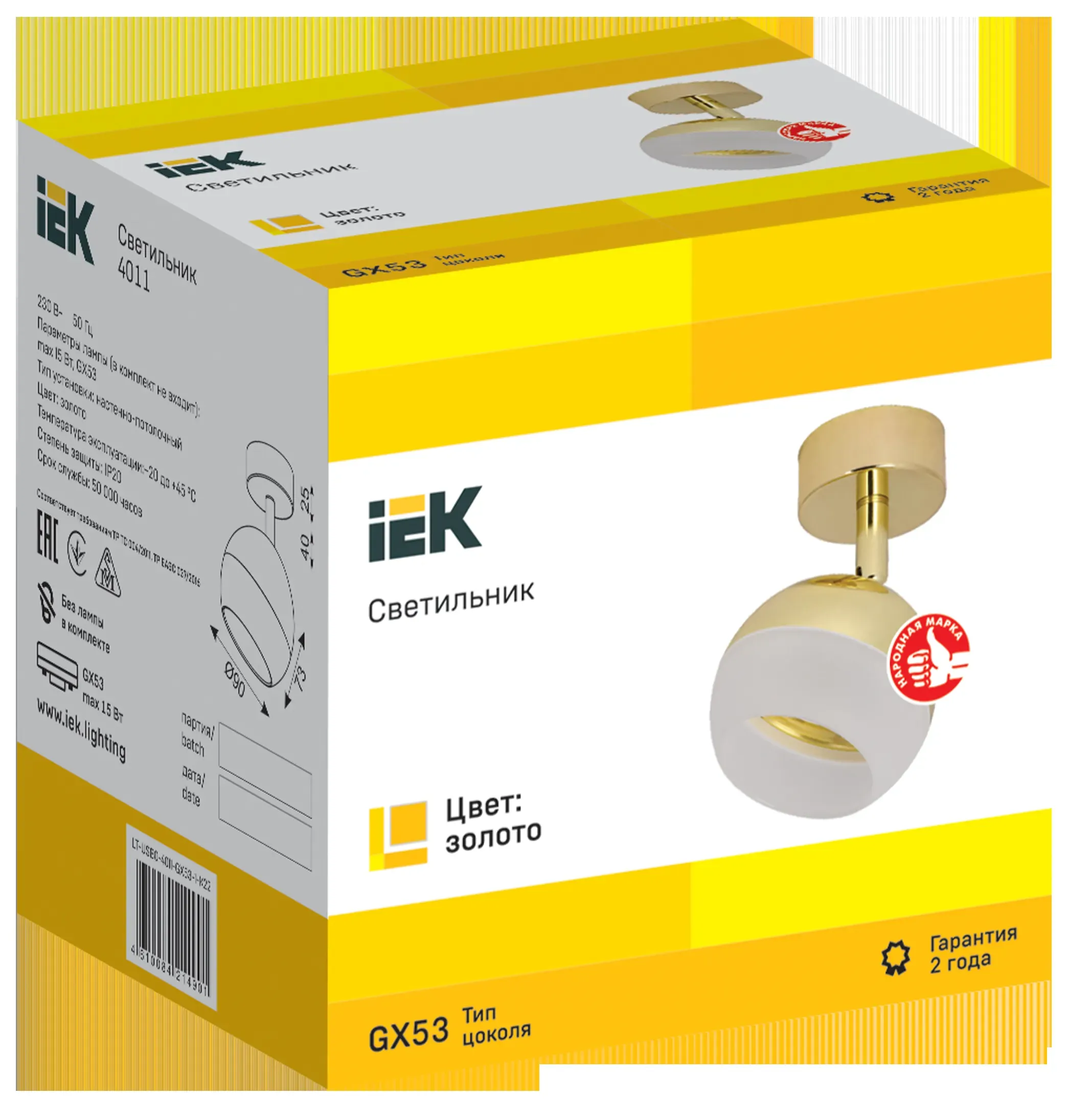 Отзывы о LIGHTING Светильник 4011 накладной настено-потолочный под лампу GX53 золото IEK IEK LT-USB0-4011-GX53-1-K22 )