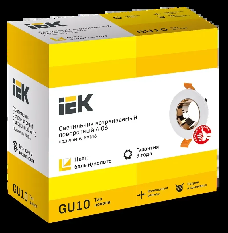 Отзывы о LIGHTING Светильник 4106 встраиваемый поворотный под лампу GU10 белый/золото пластик IEK IEK LT-UVB0-4106-GU10-1-K22 )