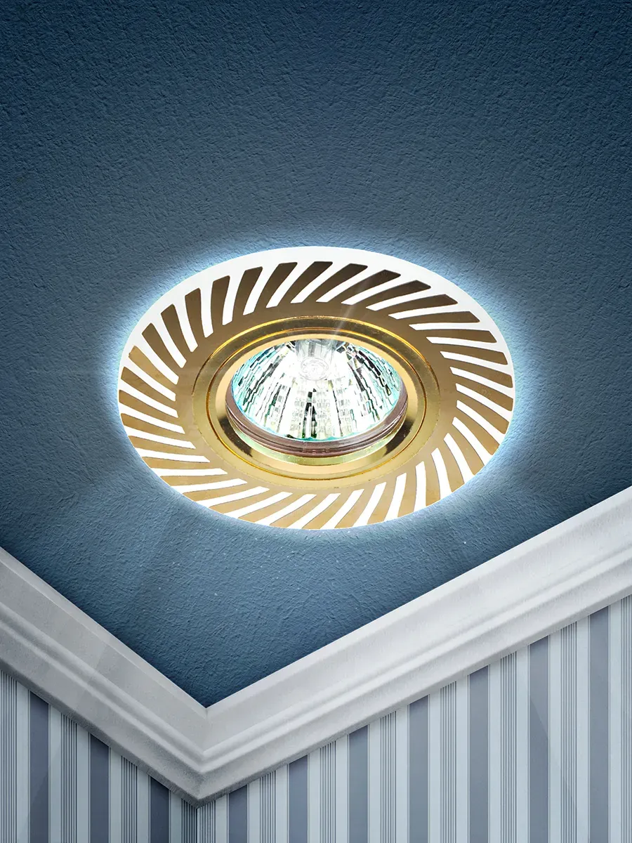 Светильник встраиваемый со светодиодной подсветкой DK LD39 WH/GD /1, цвет светильника белый/золото, цоколь GU5.3 Лампа в комплект не входит. Для основного и акцентного освещения жилых и офисных помещений.
