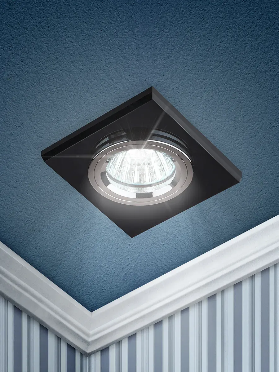 Отзывы о Светильник декор стекло квадрат MR16,12V/220V, 50W, хром/черный DK8 CH/BK ЭРА C0043792 )