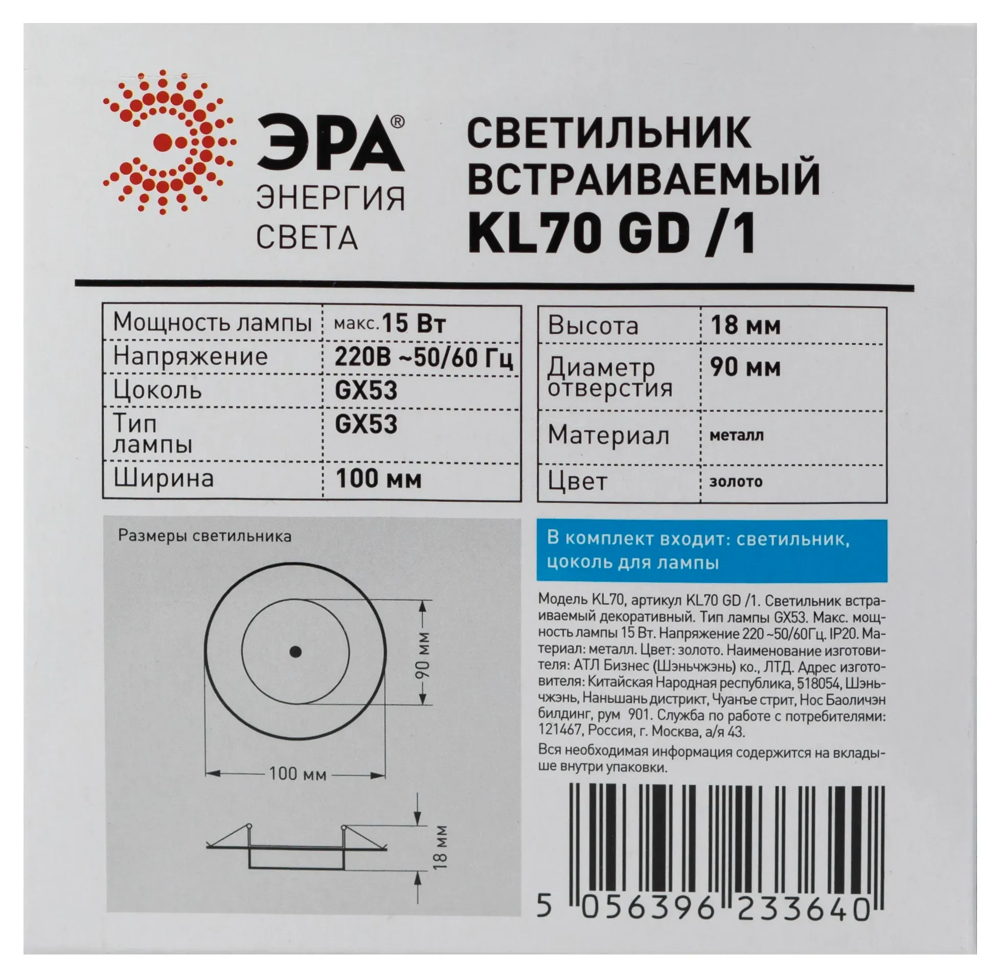 В интернет-магазине олми-коннект можно купить Светильник встраиваемый KL70 GD /1 под лампу Gx53 тонкий 220V 13W золото (40/2200) ЭРА Б0048954 артикул: Б0048954 по цене от 60.79 до 65.86 рублей. Менеджеры ответят на вопросы, дадут подробную информацию по характеристикам .