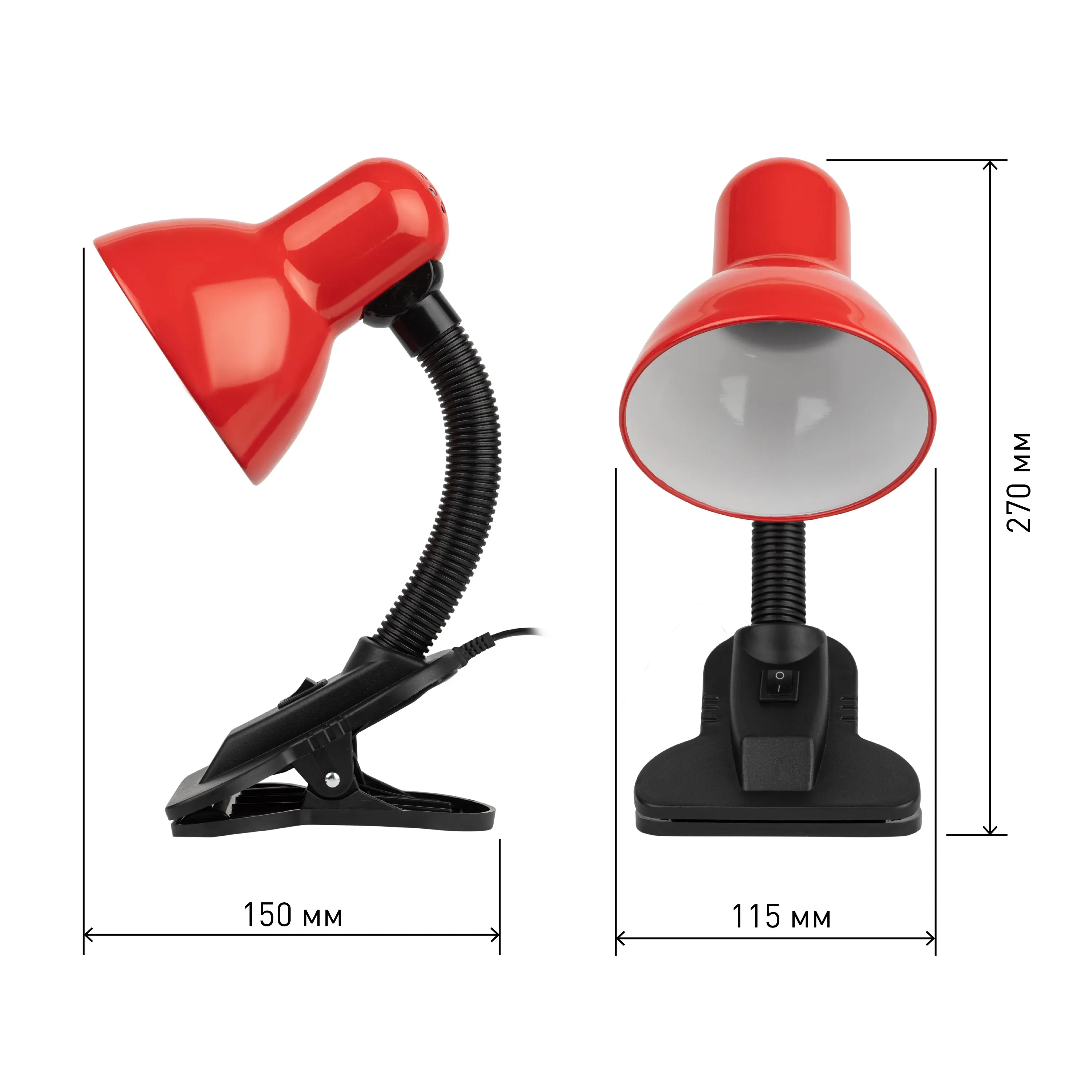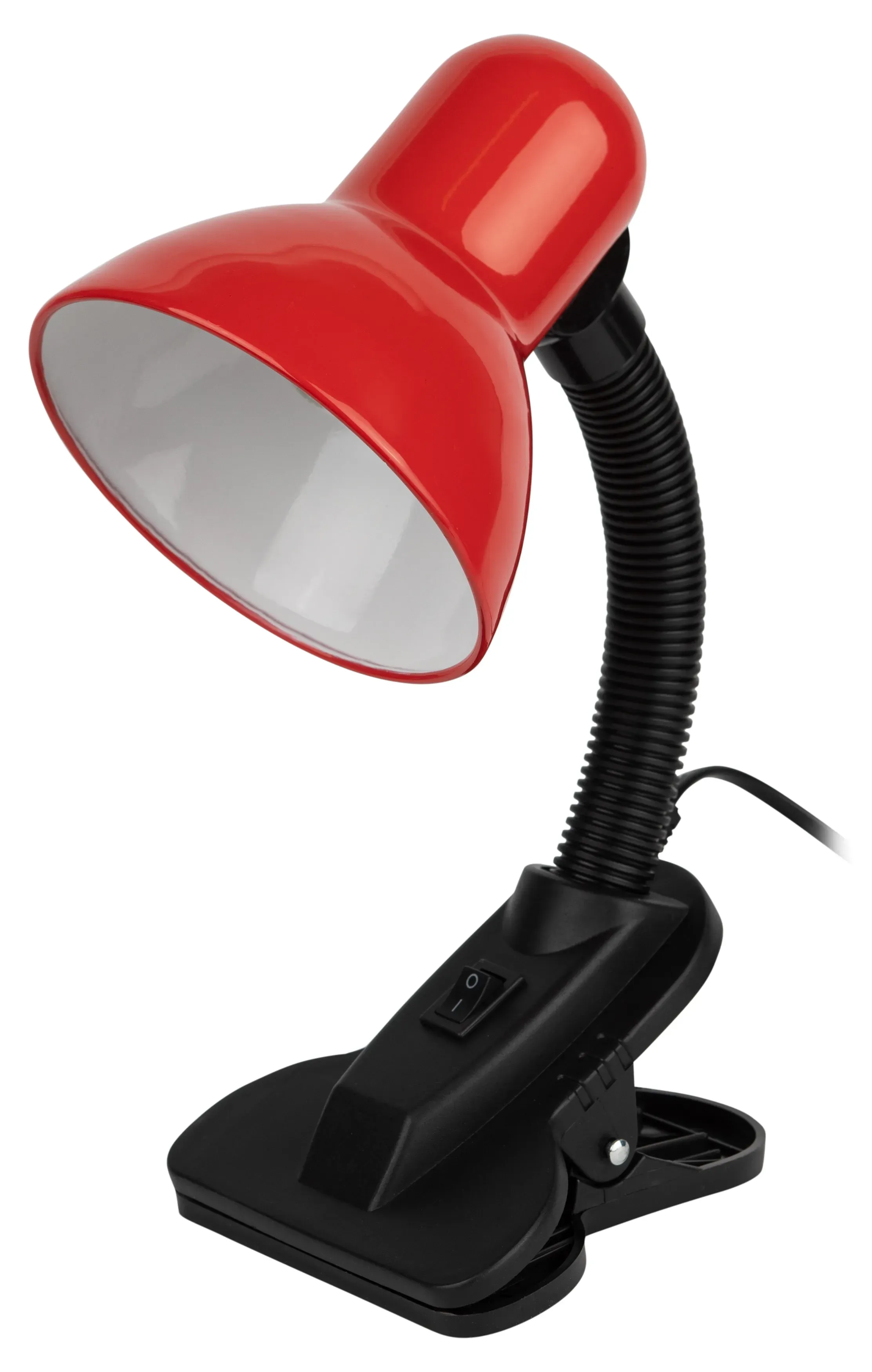 Металлический плафон. Направление света регулируется гибкой стойкой, которая обеспечивает наклон и поворот плафона в любом направлении. Выключатель на прищепке. Классический дизайн.Предназначен для использования с лампой накаливания или компактной люминесцентной лампой (КЛЛ): максимальная мощность 40W, цоколь E27, 220V 50HZ, лампа в комплект не входит.