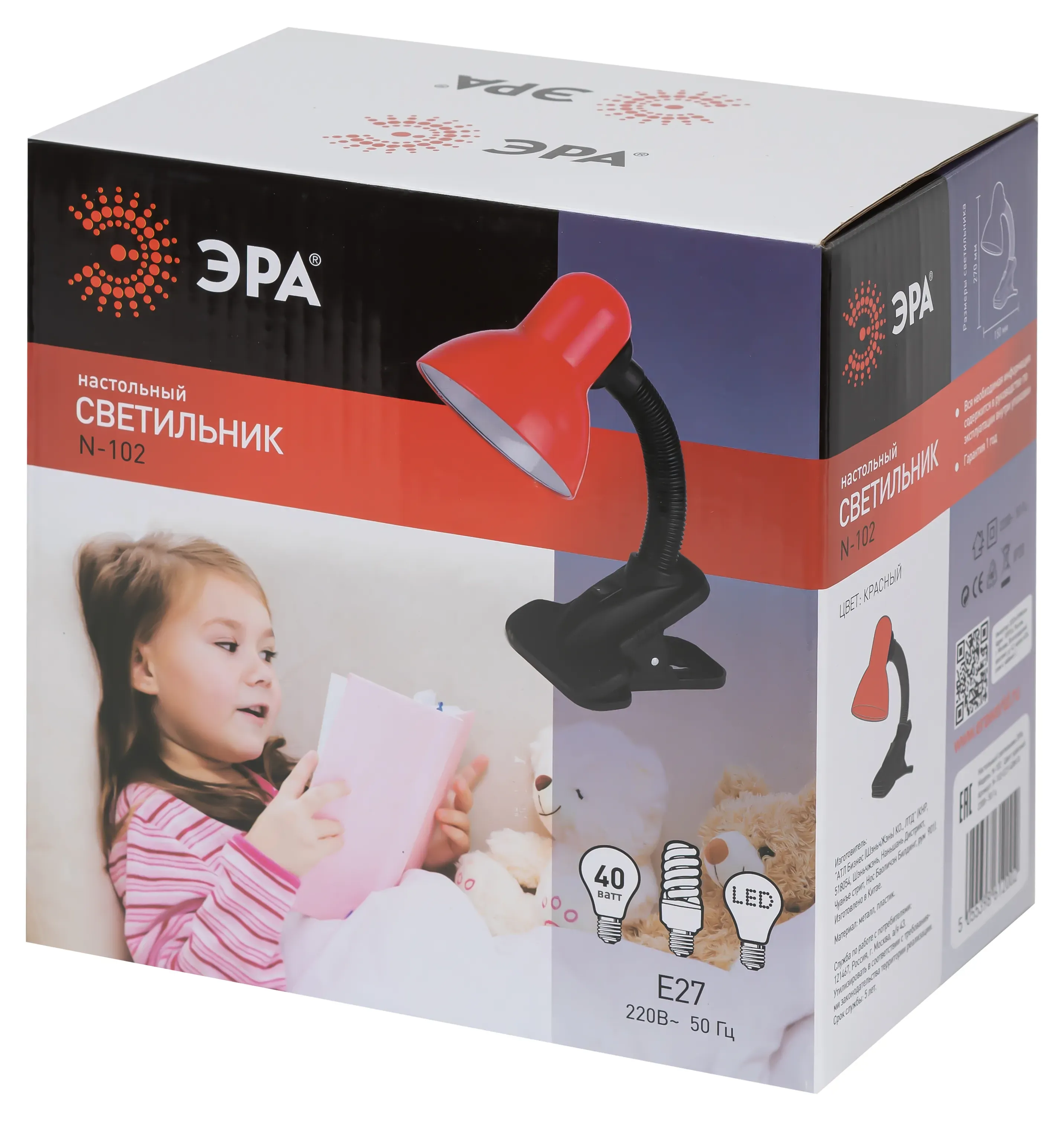 Отзывы о Светильник настольный на прищепке красный N-102-E27-40W-R ЭРА ЭРА C0041425 )