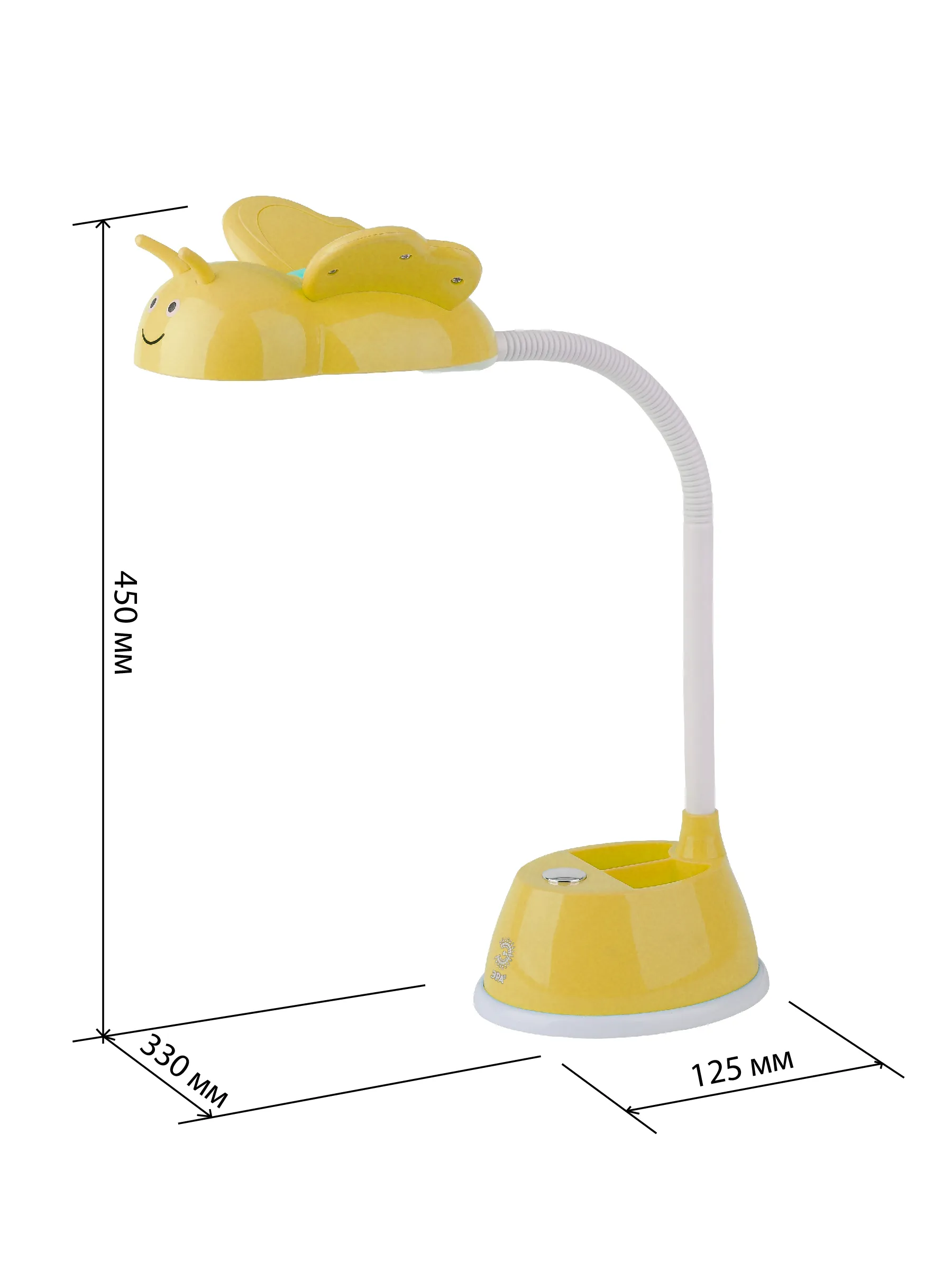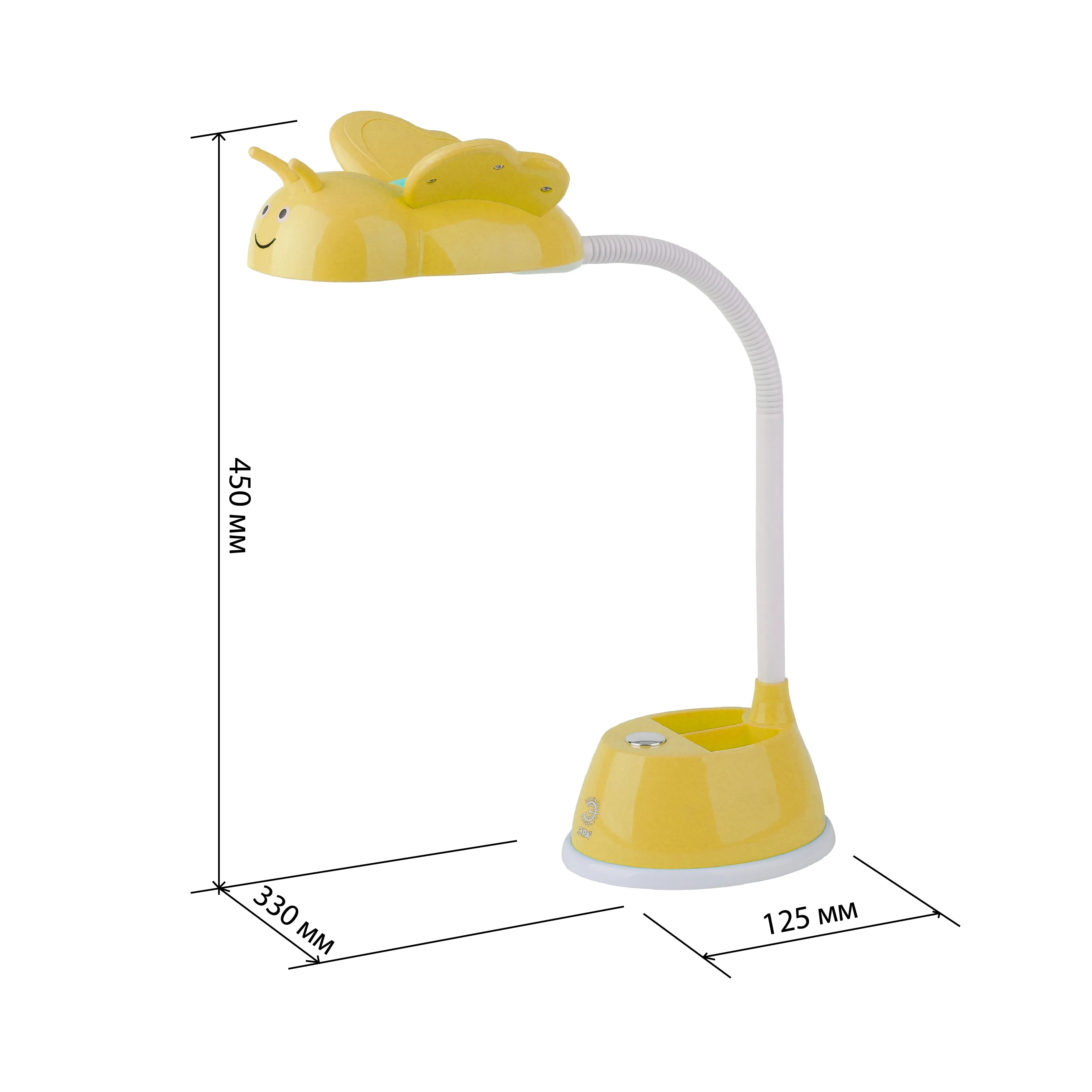 Настольный светильник для детей ЭРА NLED-434-6W-Y со светодиодами (LED) в качестве источников света с выключателем. Удобная подставка на основании поможет всегда иметь ручку, карандаши или линейку под рукой. Легкий выбор направления света - наклон и поворот плафона в любом направлении. Яркий детский дизайн в виде пчелки оживит комнату, светильник и станет верным помощником для ребенка в учебе или творчестве.