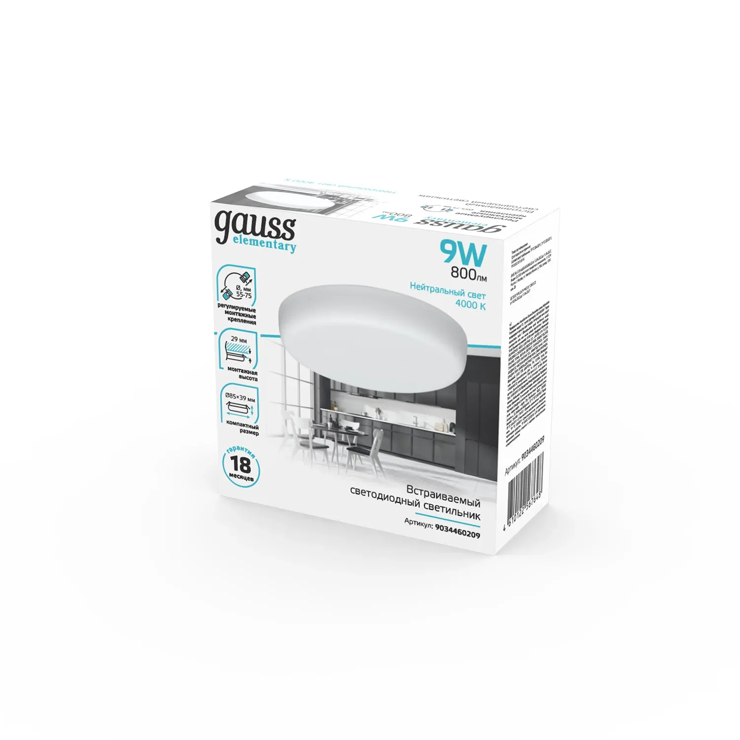 Отзывы о Светильник светодиодный ДВО 9 Вт 4000К 800 лм 220-240В IP20 D85х29мм монт d75мм Алюминий безрамочный Elementary Gauss Gauss 9034460209 )