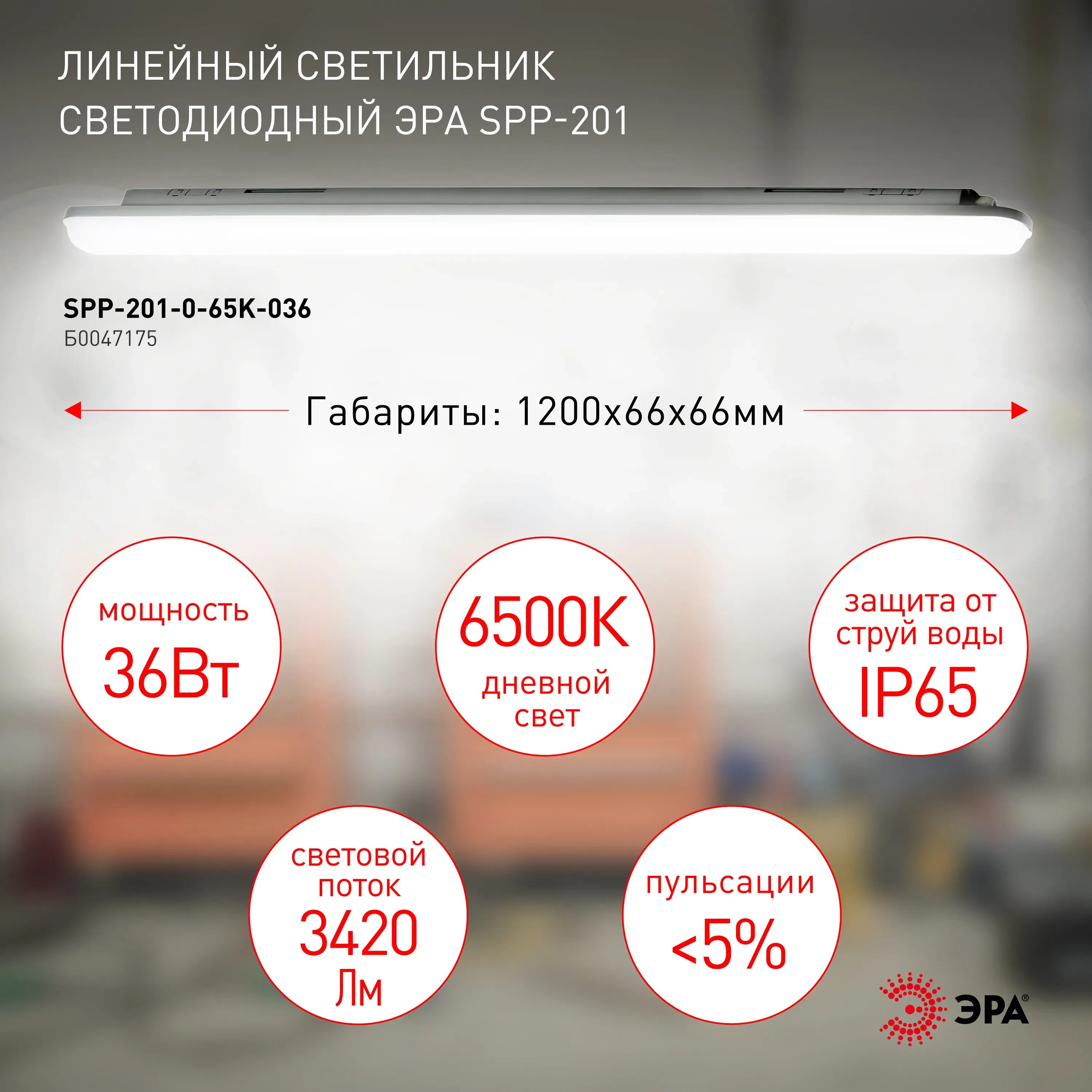 Отзывы о Светильник светодиодный линейный IP65 36Вт 3420Лм 6500К 1200мм мат SPP-201-0-65K-036 ЭРА Б0047175 )