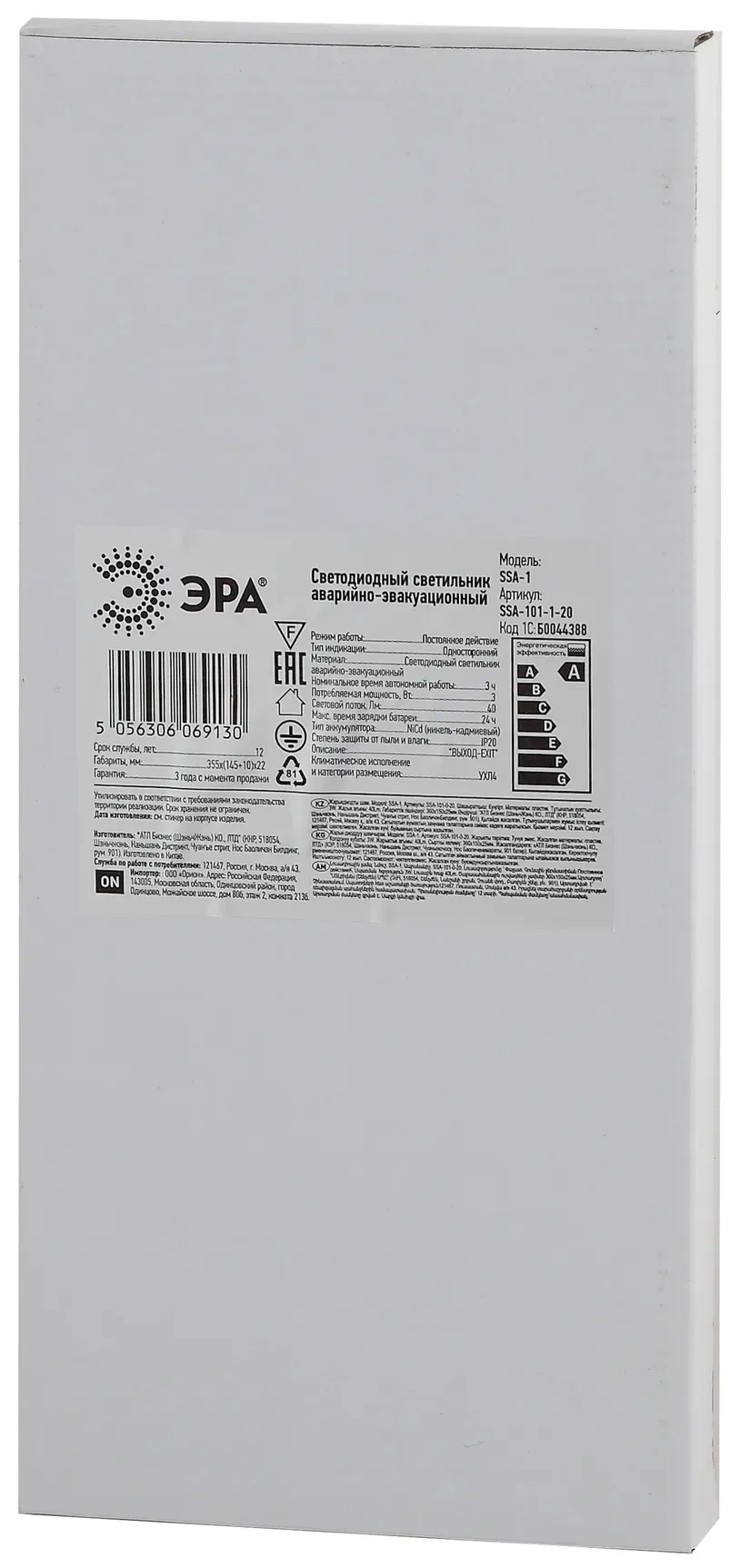 В интернет-магазине олми-коннект можно купить Светильник аварийный светодиодный 3ч 3Вт ВЫХОД-E XIT SSA-101-1-20 ЭРА Б0044388 артикул: Б0044388 по цене от 439.15 до 459.11 рублей. Менеджеры ответят на вопросы, дадут подробную информацию по характеристикам .