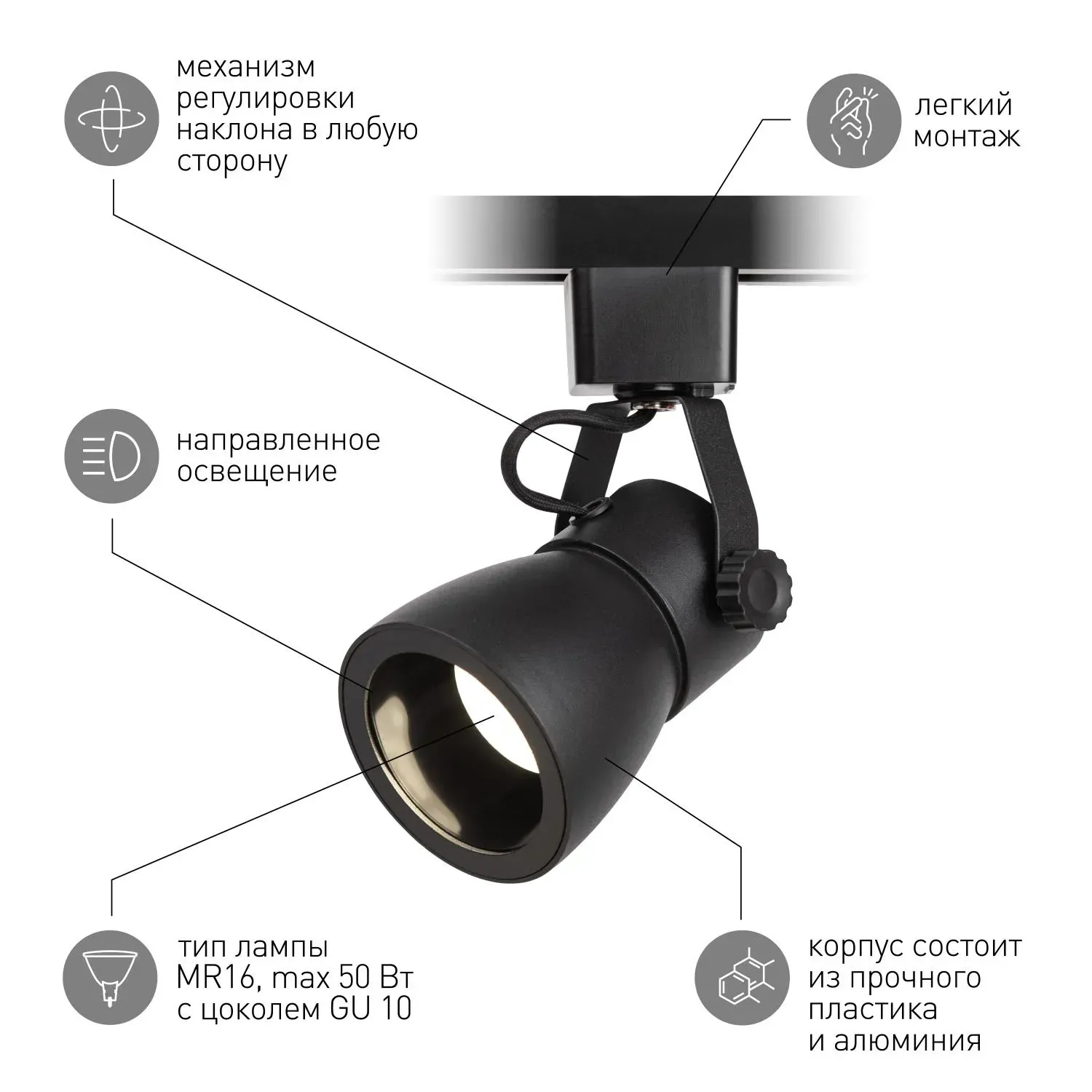 Отзывы о Светильник трековый однофазный TR38-GU10 BK MR16 черный под лампу ЭРА Б0053308 )