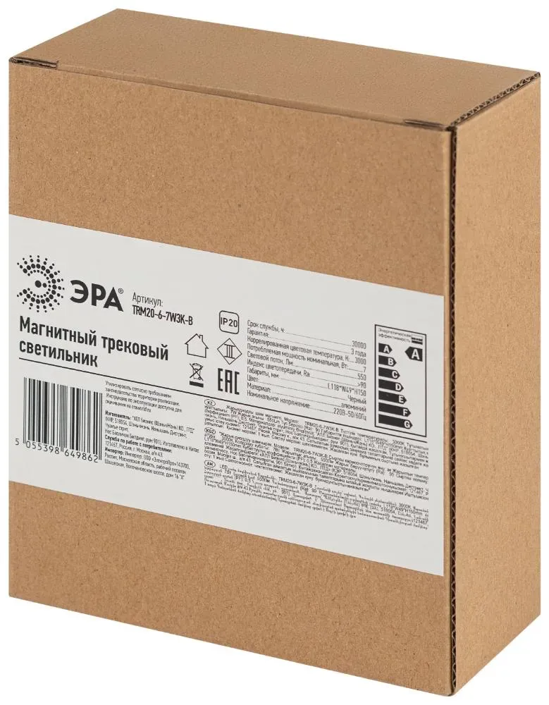 Отзывы о Светильник трековый магнитный TRM20-6-7W3K-B для системы NOVA 48V 7Вт 3000К направленный свет черный ЭРА Б0054820 )