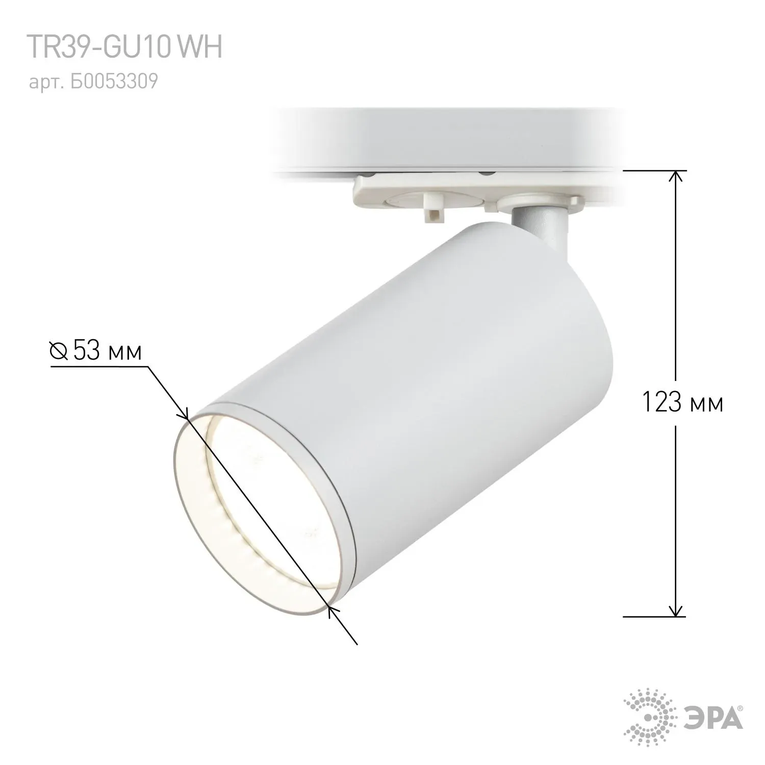 В интернет-магазине олми-коннект можно купить Трековый светильник однофазный TR39-GU10 WH MR16 белый лампа MR16 ( в комплект не входит) ЭРА Б0053309 артикул: Б0053309 по цене от 309.33 до 323.39 рублей. Менеджеры ответят на вопросы, дадут подробную информацию по характеристикам .