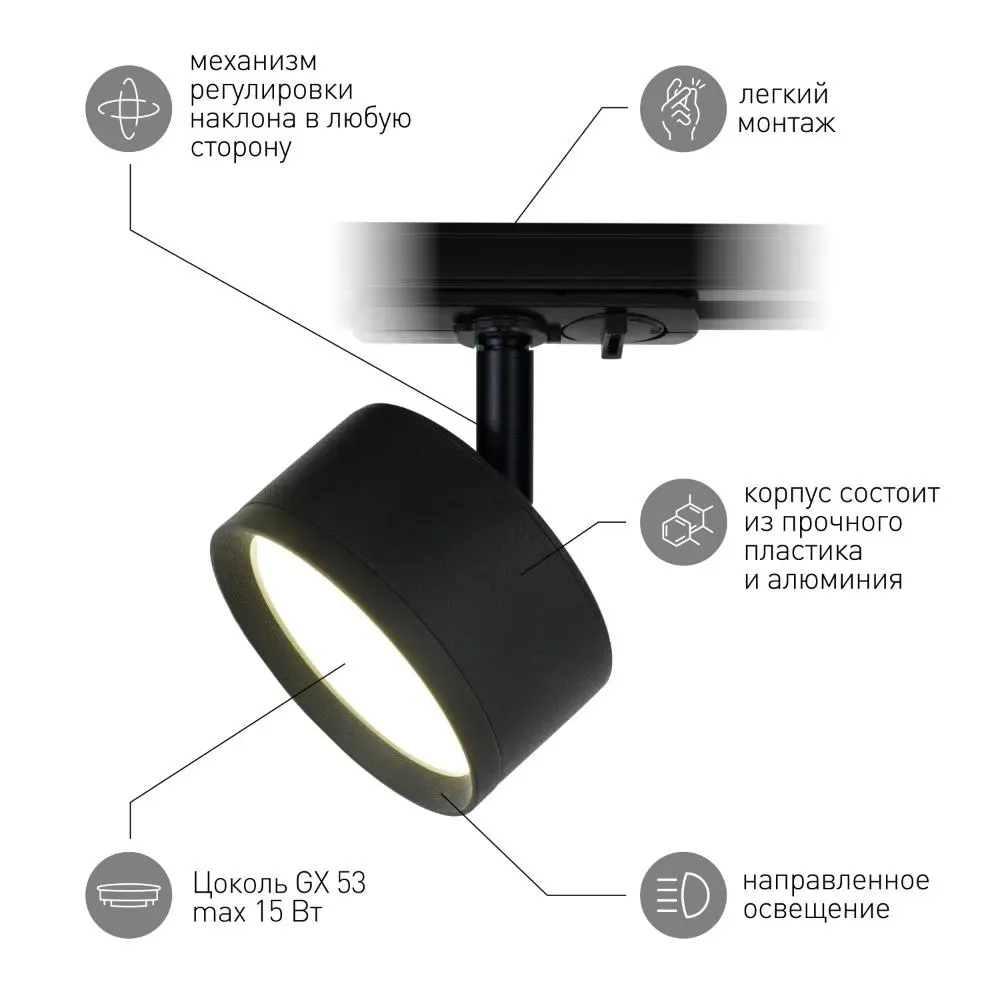 Отзывы о Трековый светильник TR48 - GX53 BK однофазный под лампу GX53 матовый черный под лампу GX53, лампа в комплект не входит ЭРА Б0054159 )
