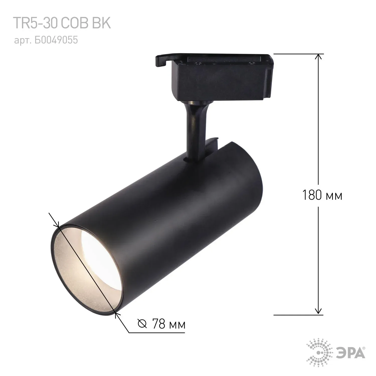 В интернет-магазине олми-коннект можно купить Трековый светильник однофазный TR5-30 COB BK 30 ватт 4000К 2100Лм черный ЭРА Б0049055 артикул: Б0049055 по цене от 973.24 до 1017.47 рублей. Менеджеры ответят на вопросы, дадут подробную информацию по характеристикам .